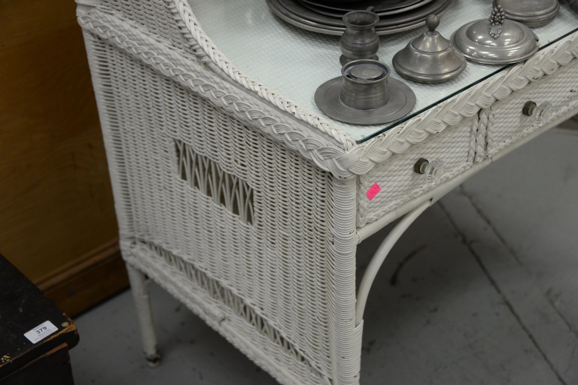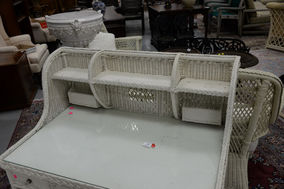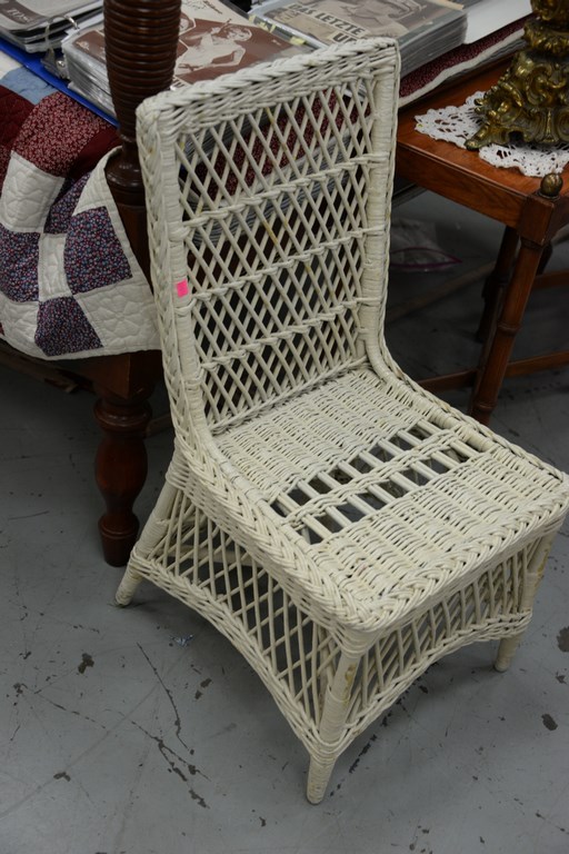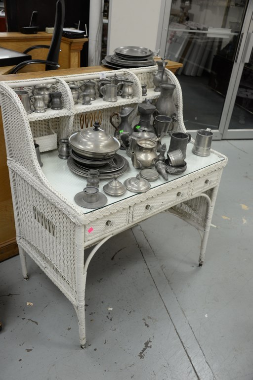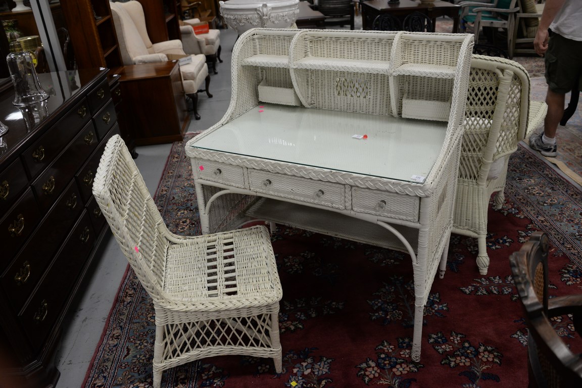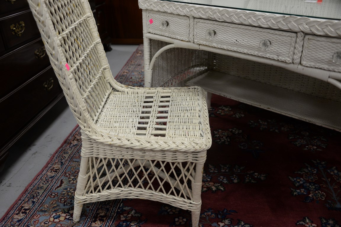 Wicker desk and chair. desk: ht. 43 in. wd. 36 in. dp. 23 in.