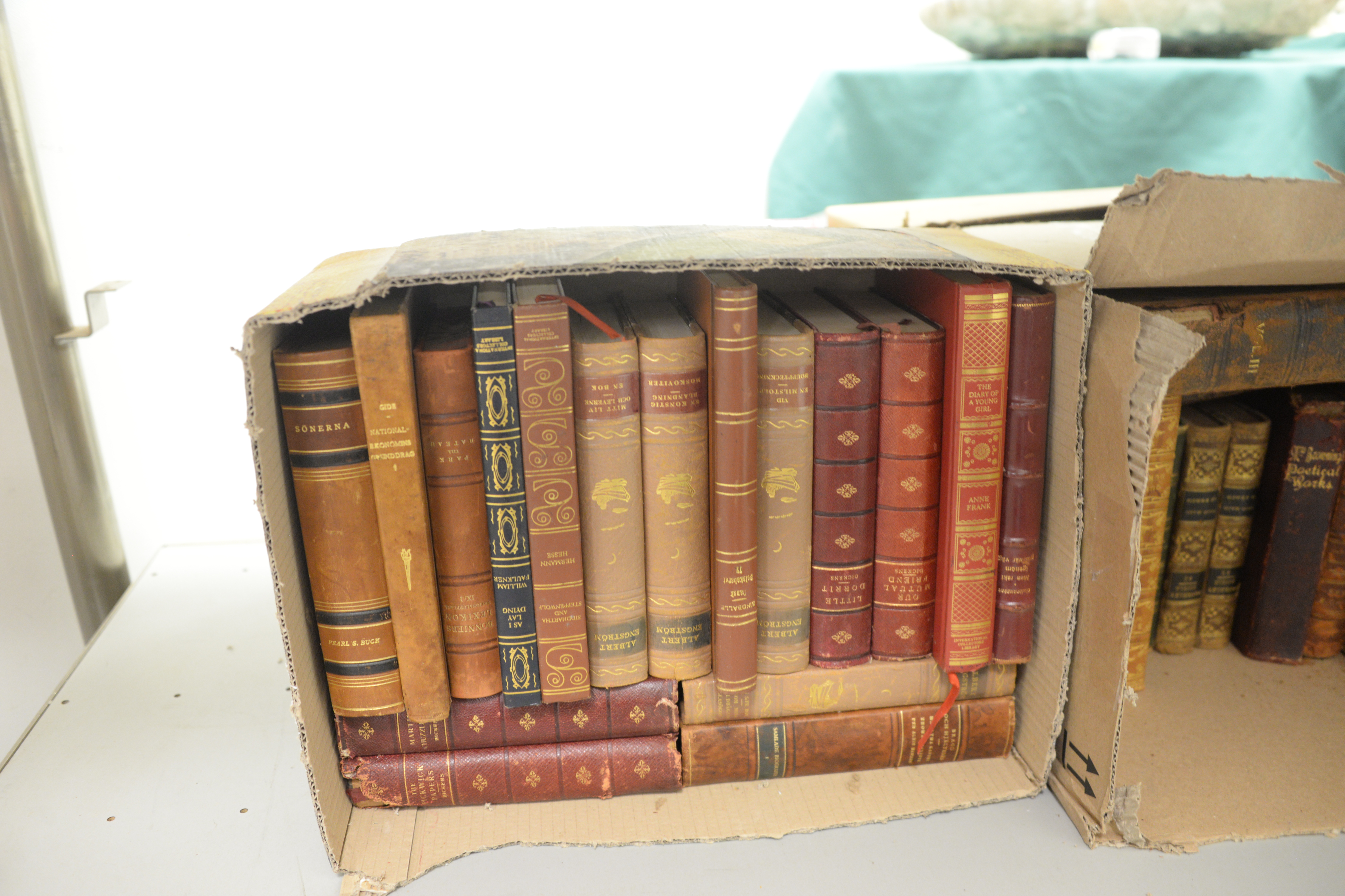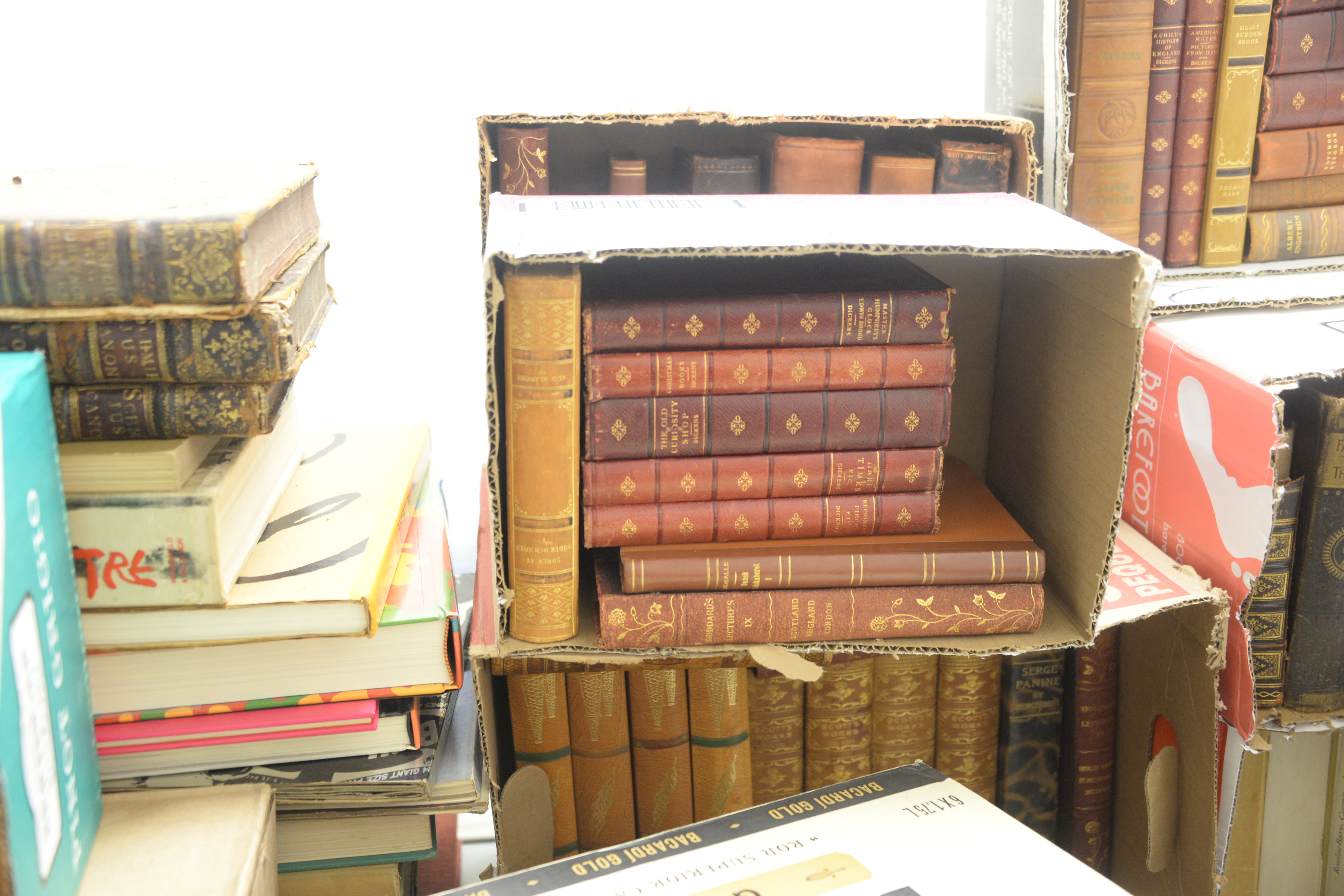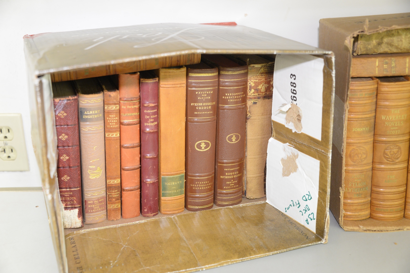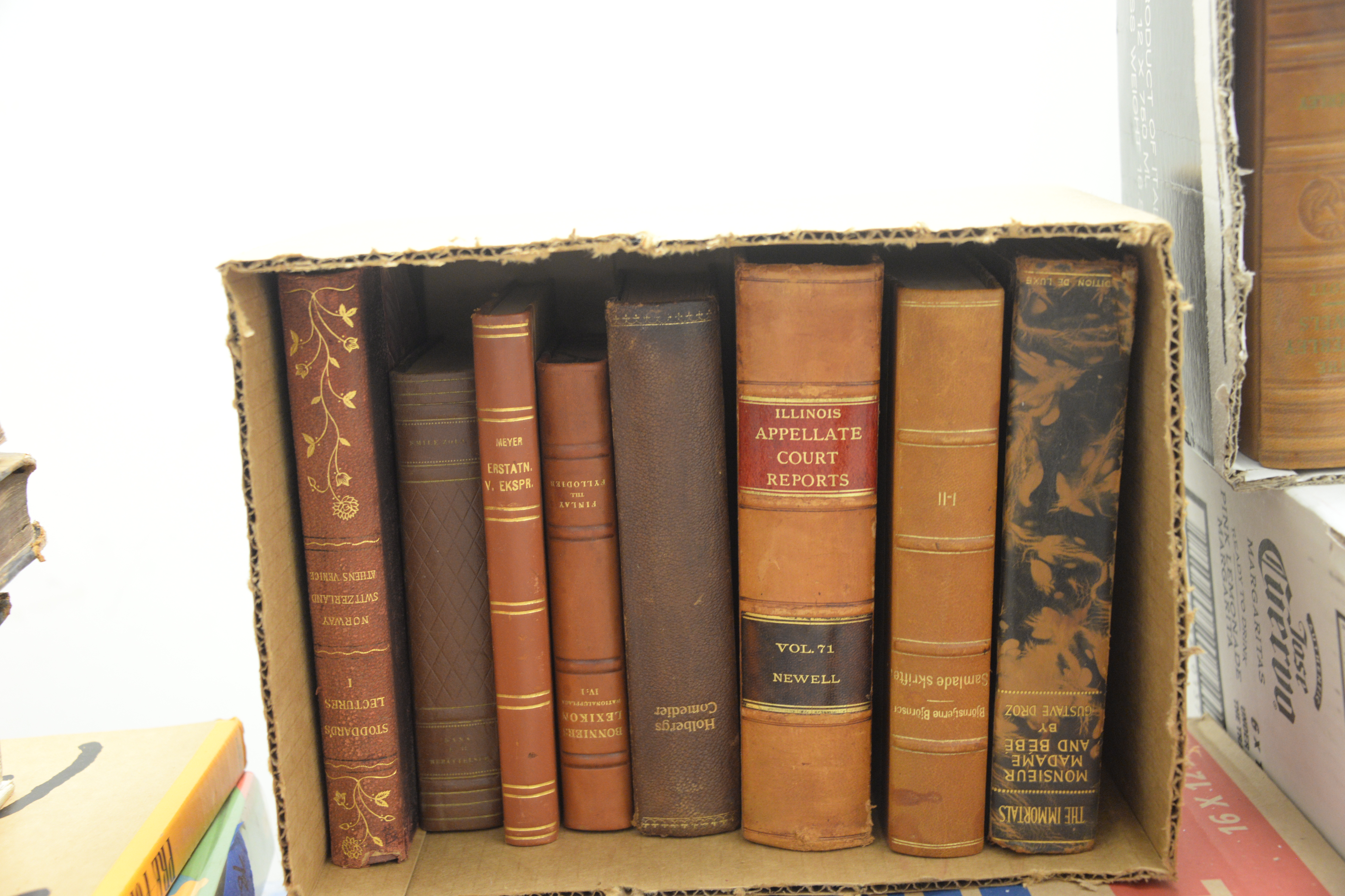 Large Lot of Mostly Leather Bound Books, approximately 30 boxes.