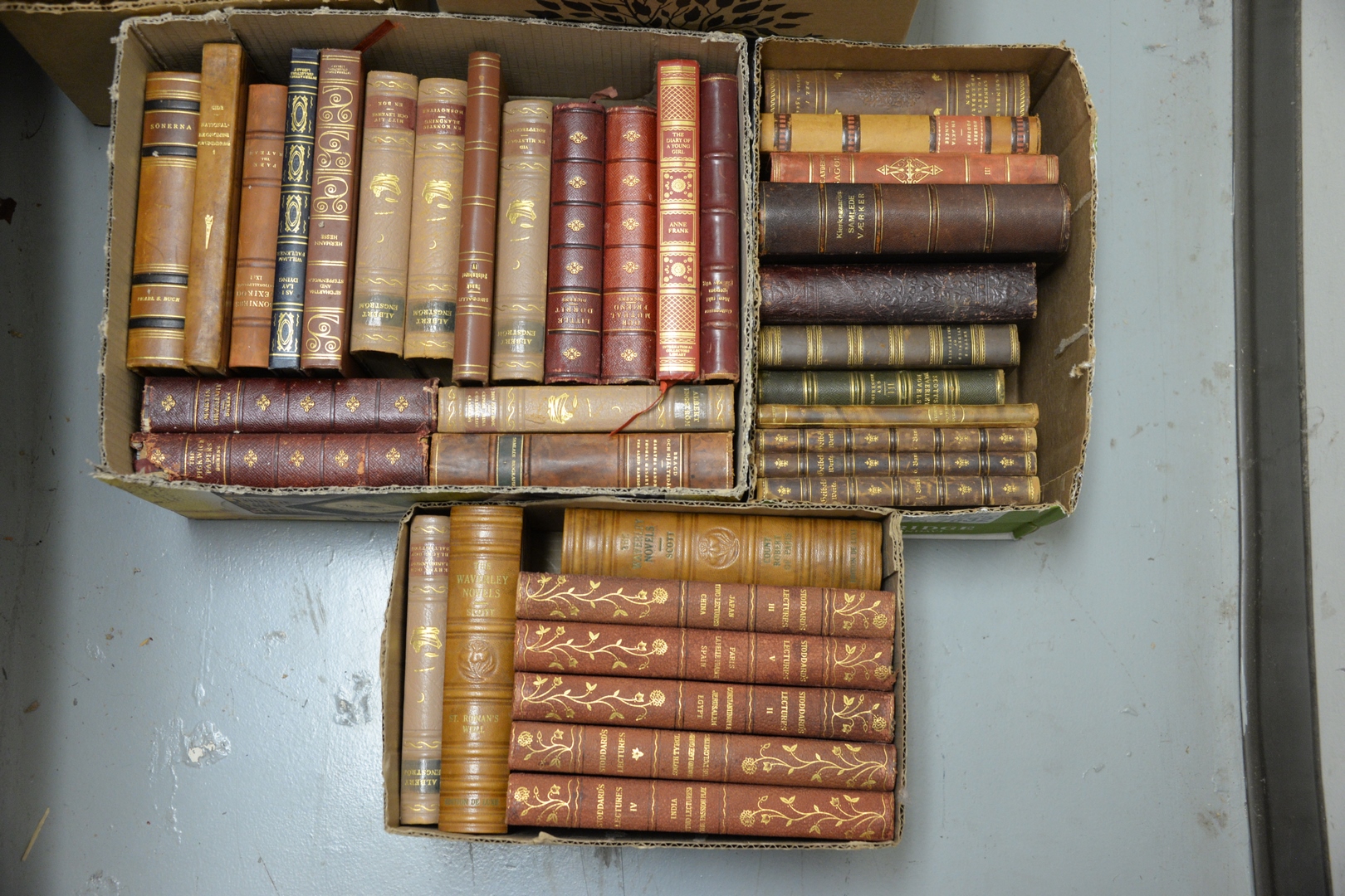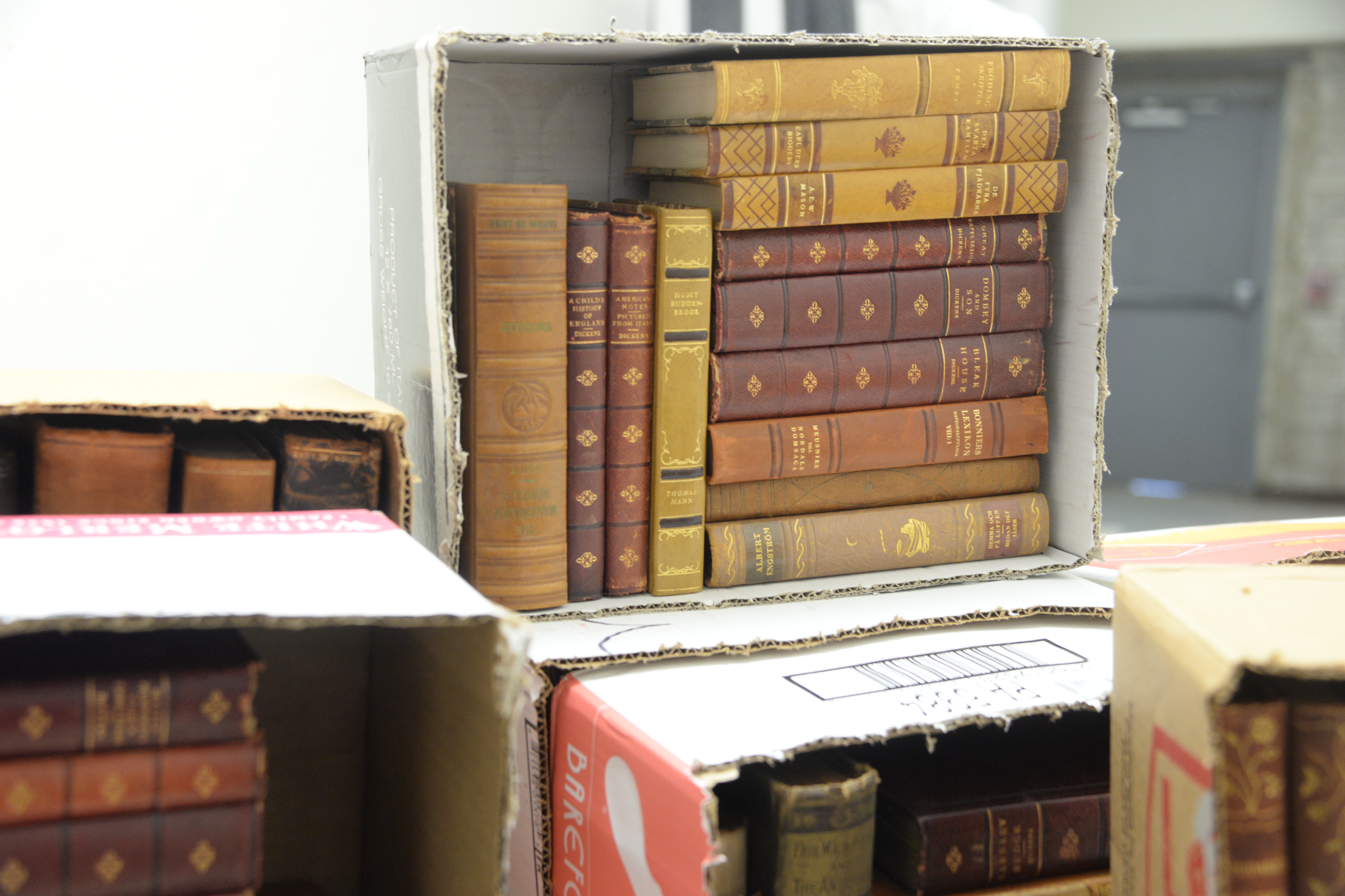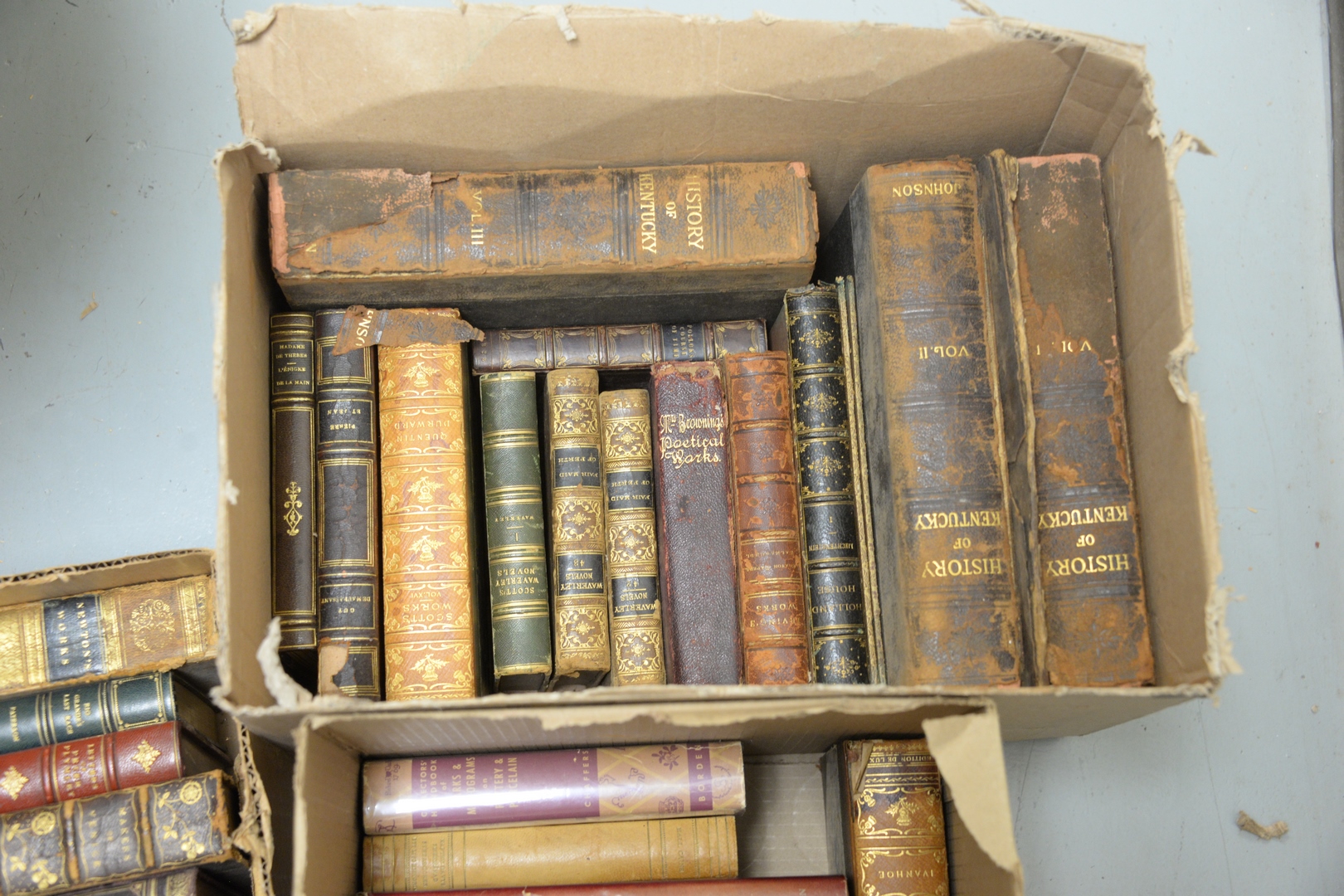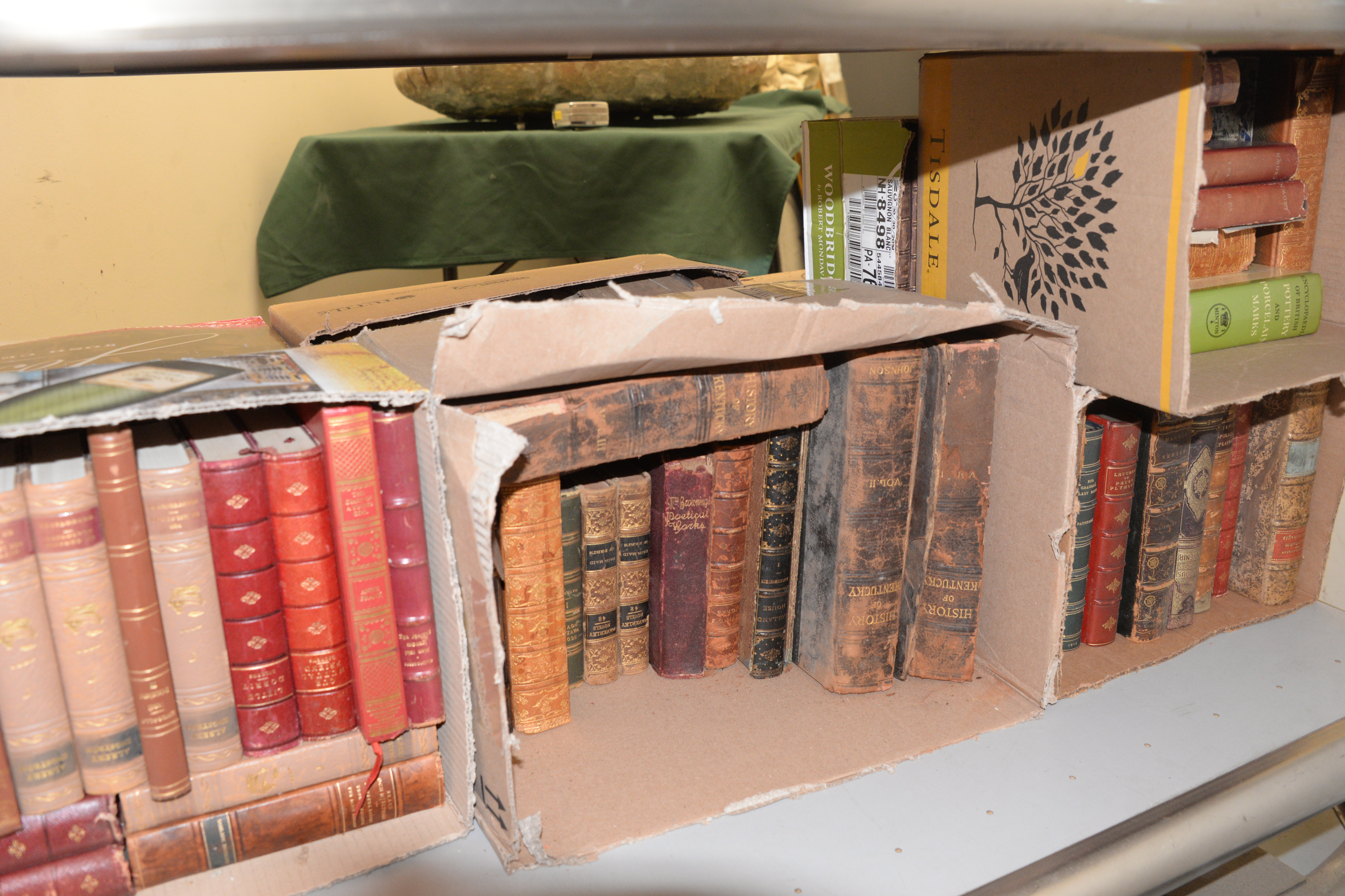 Large Lot of Mostly Leather Bound Books, approximately 30 boxes.