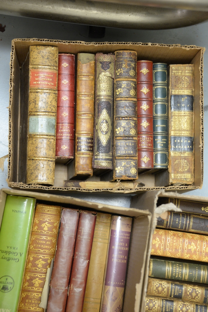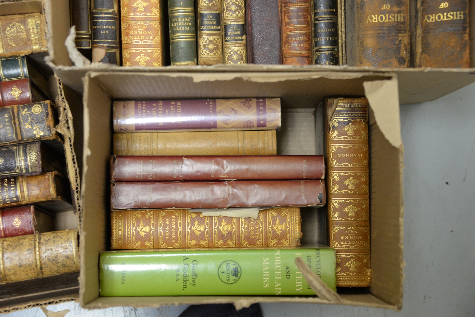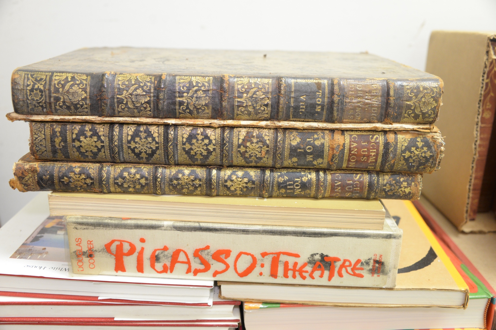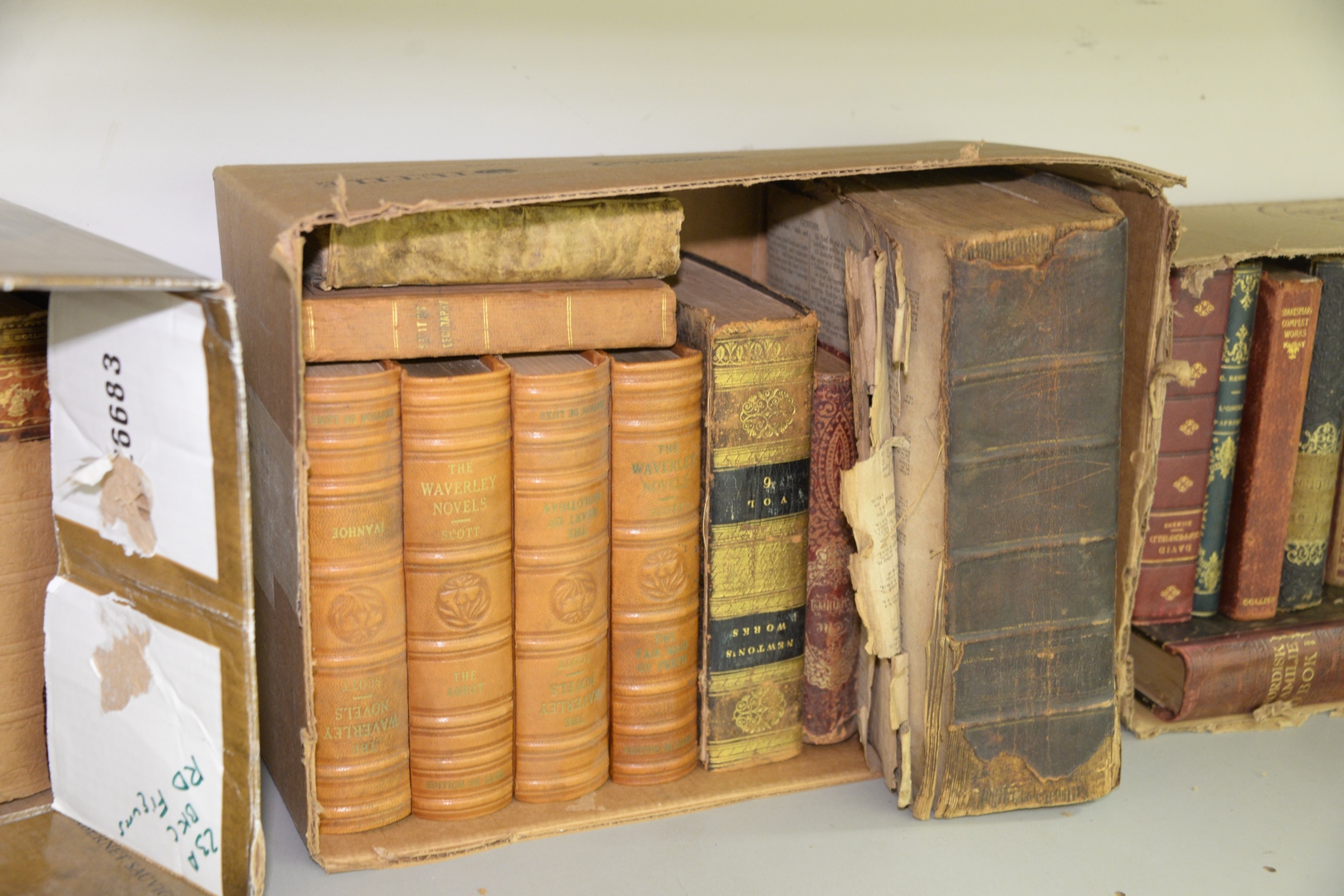 Large Lot of Mostly Leather Bound Books, approximately 30 boxes.