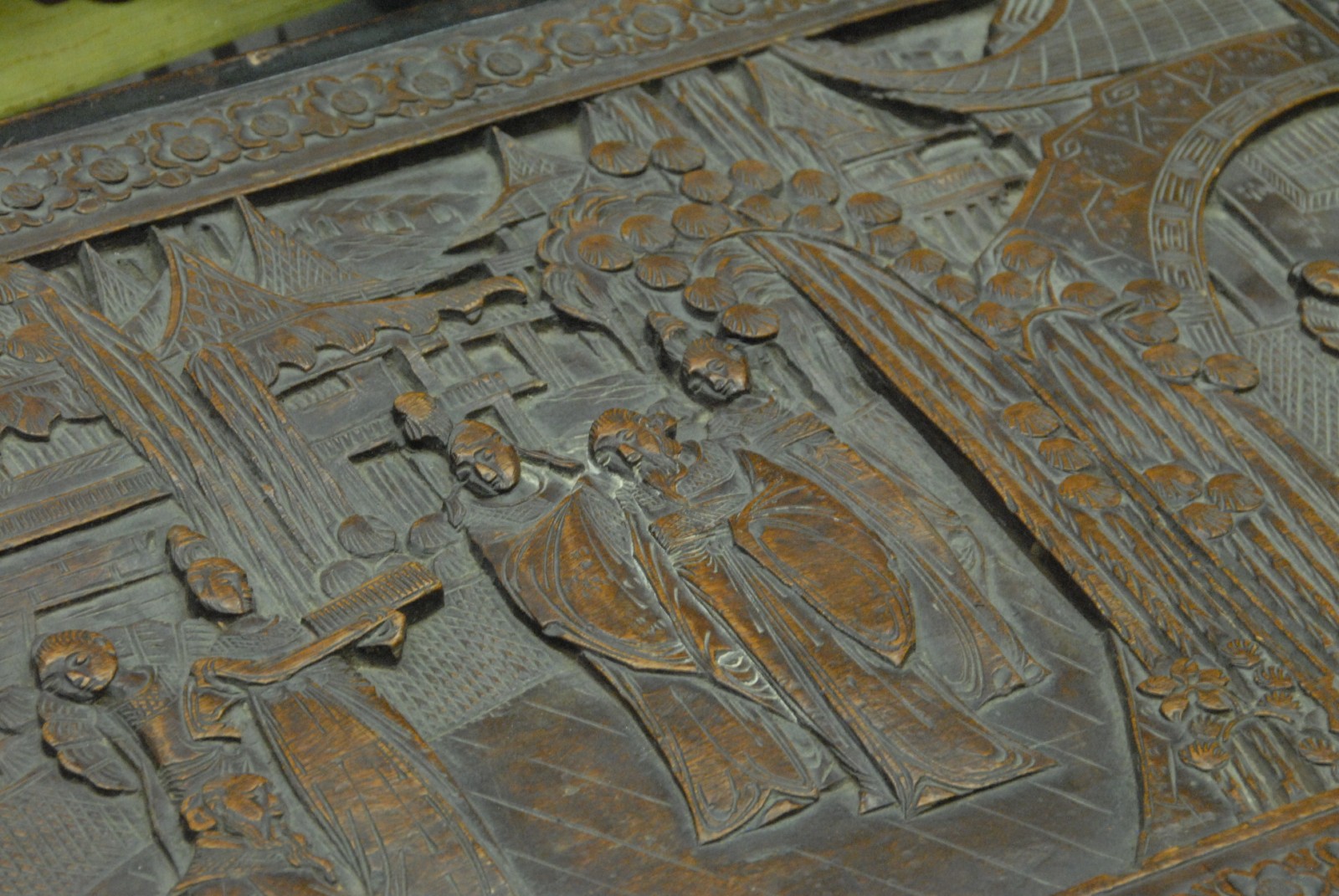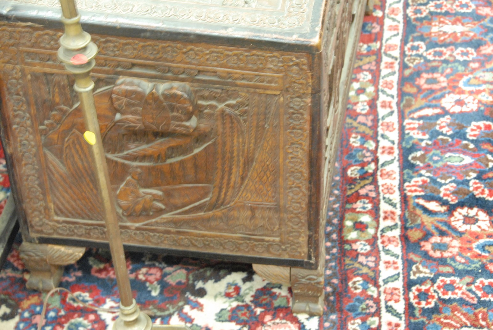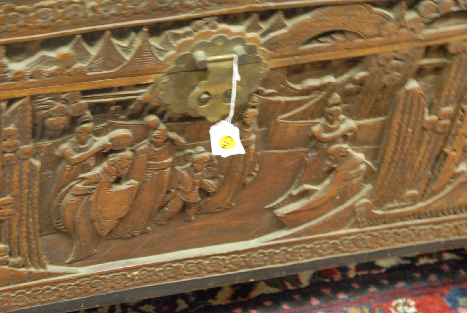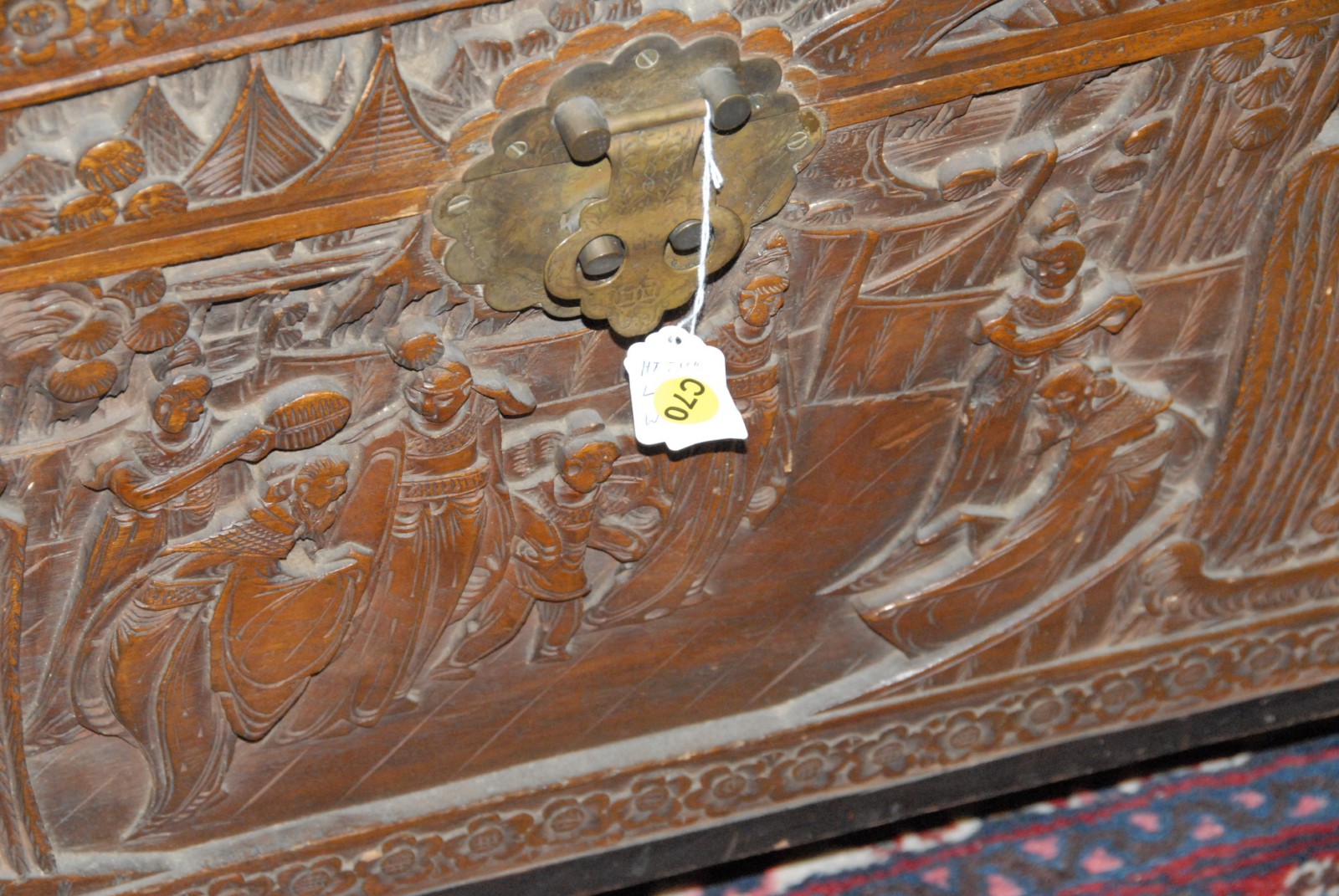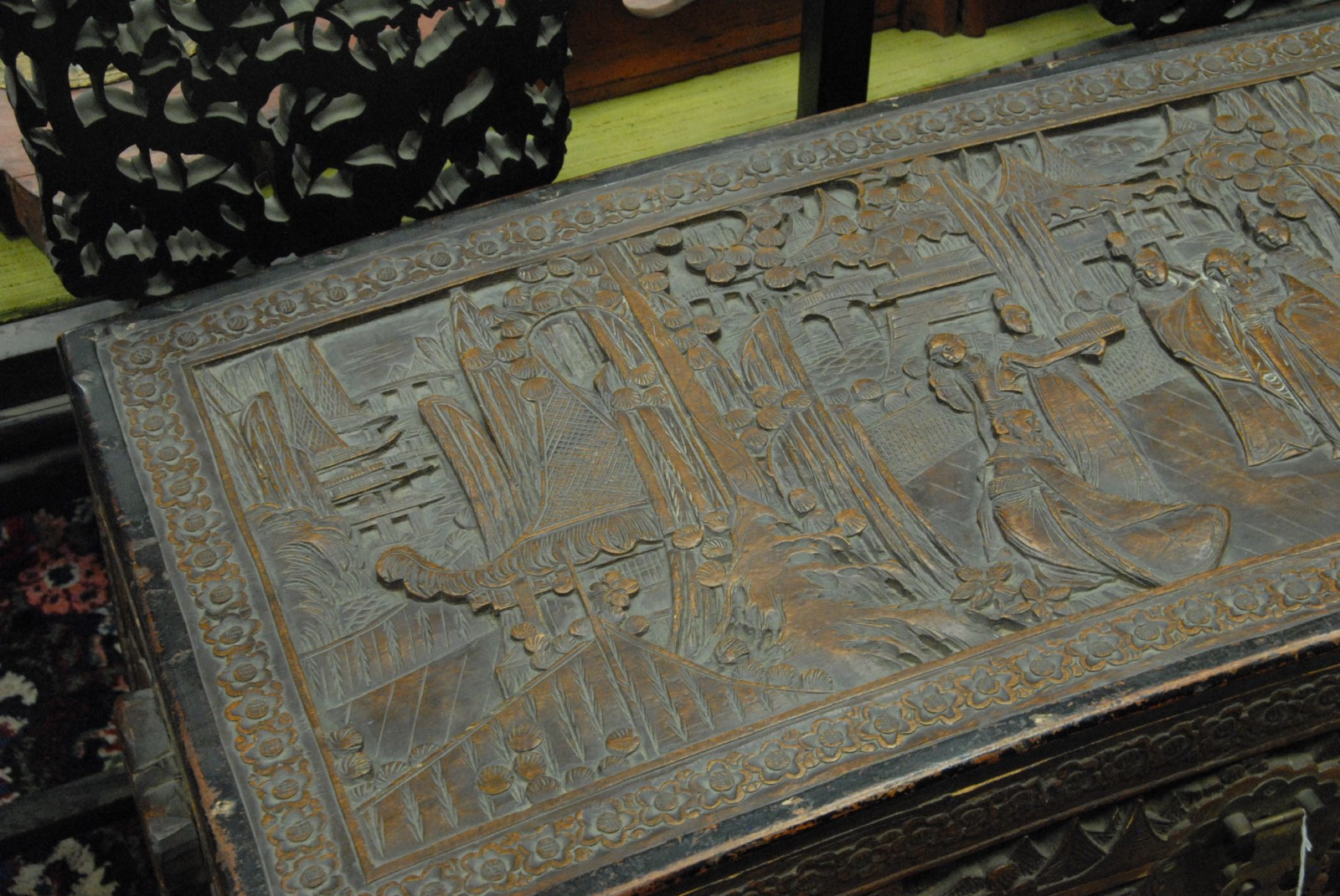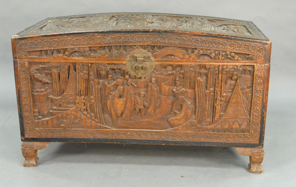 Carved camphorwood lift top chest.