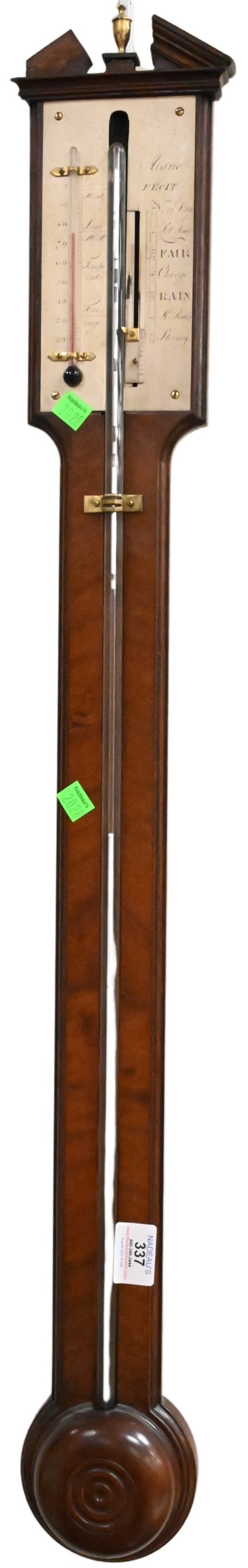 Mahogany Stick Barometer, height 39 inches, Provenance: Julius H Jacobson II a Fifth Avenue Estate.