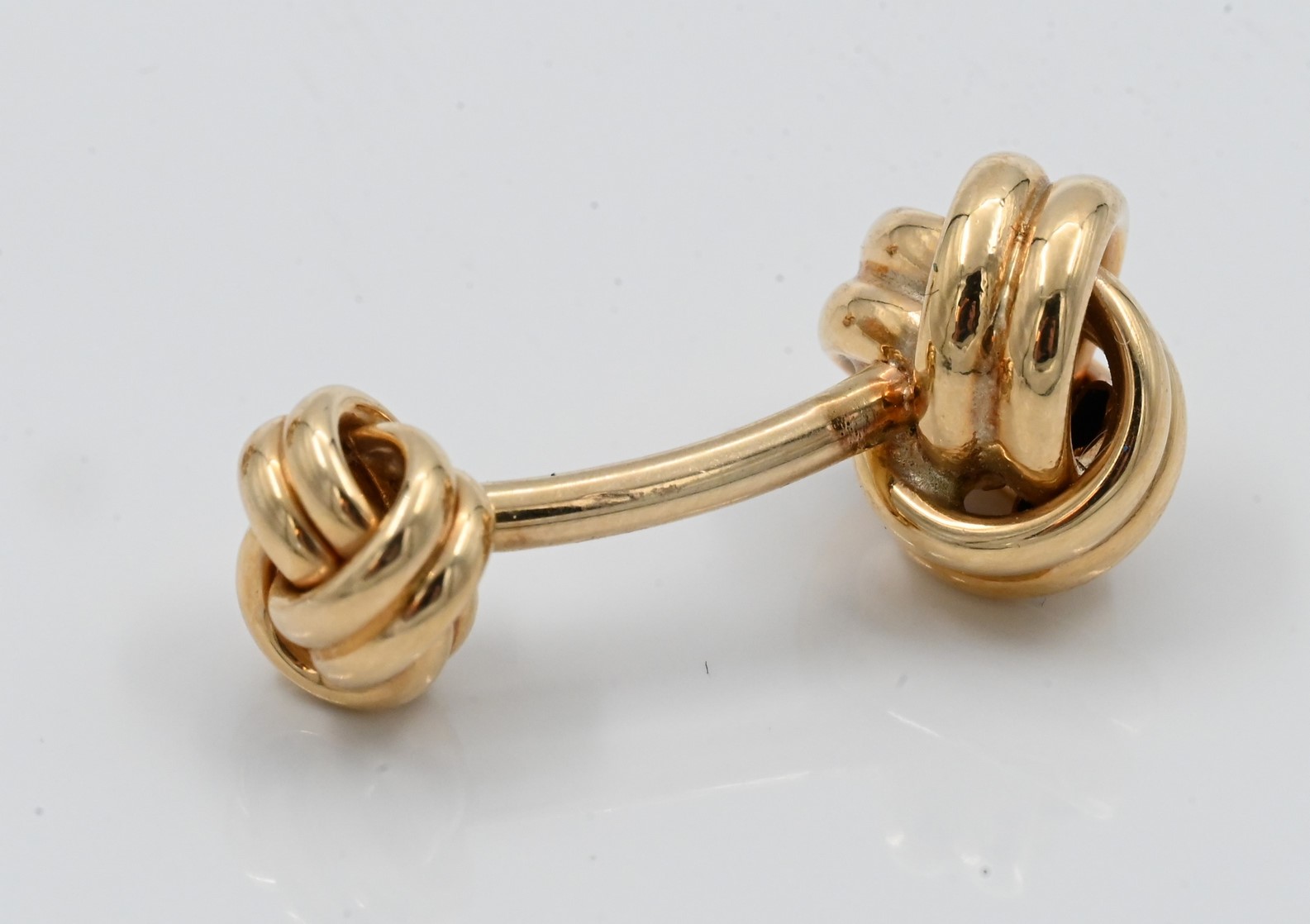 Lot 337: Pair of 14K Yellow Gold Double Love Knot Cufflinks