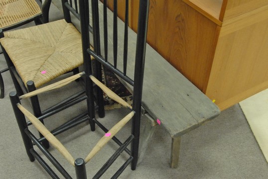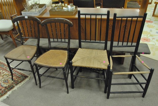 Pair of Italian caned side chairs and pair of rush seat Shaker style chairs.