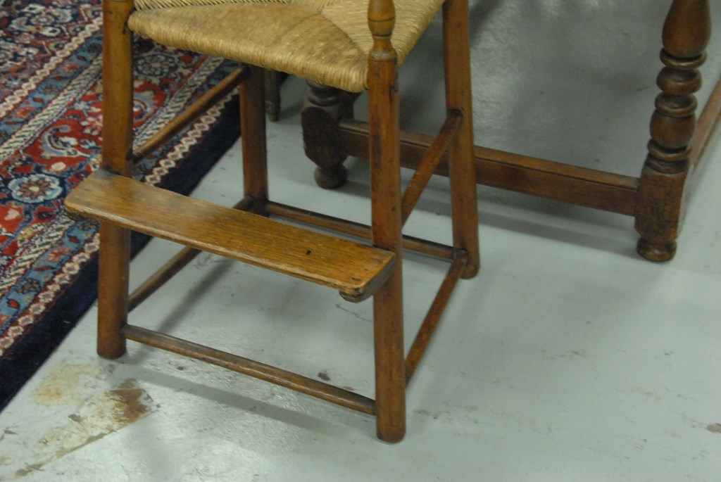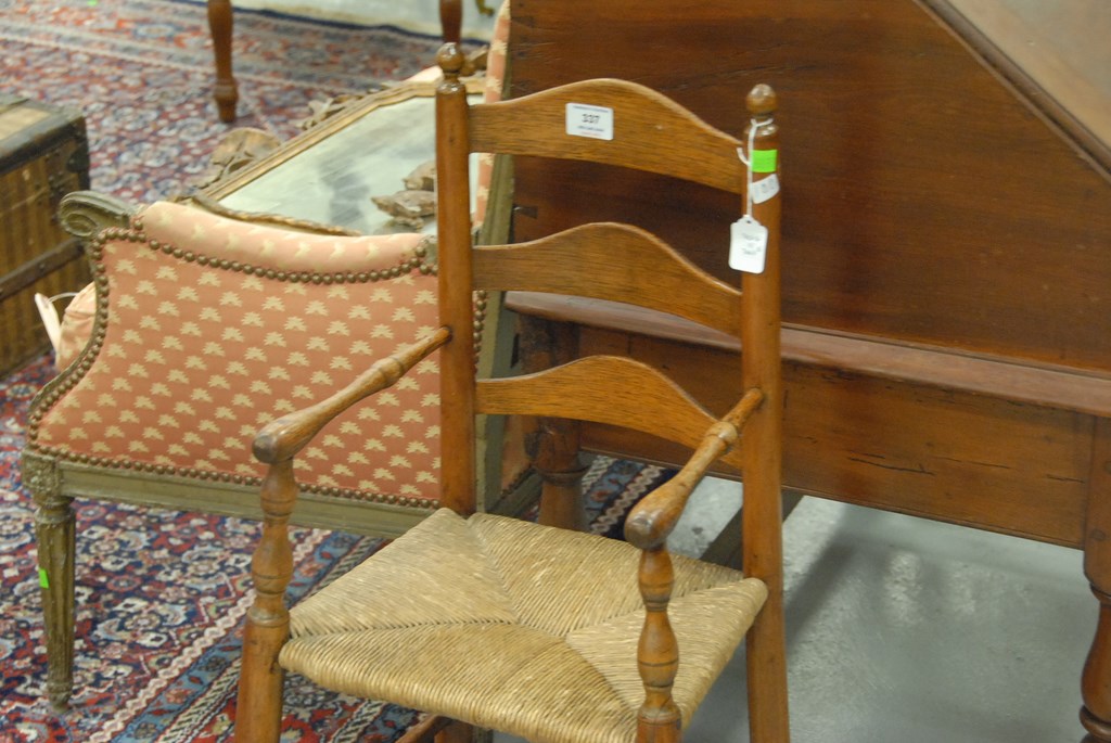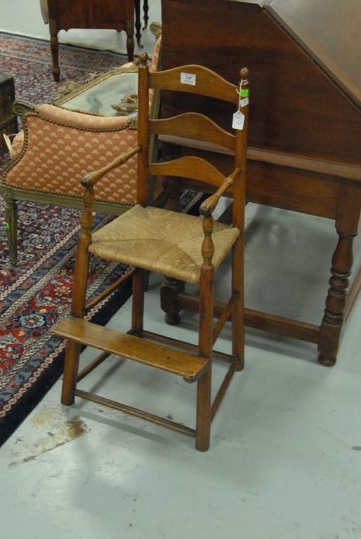 Primitive ladderback youth chair with rush seat. seat ht. 19in. chair ht. 36in.