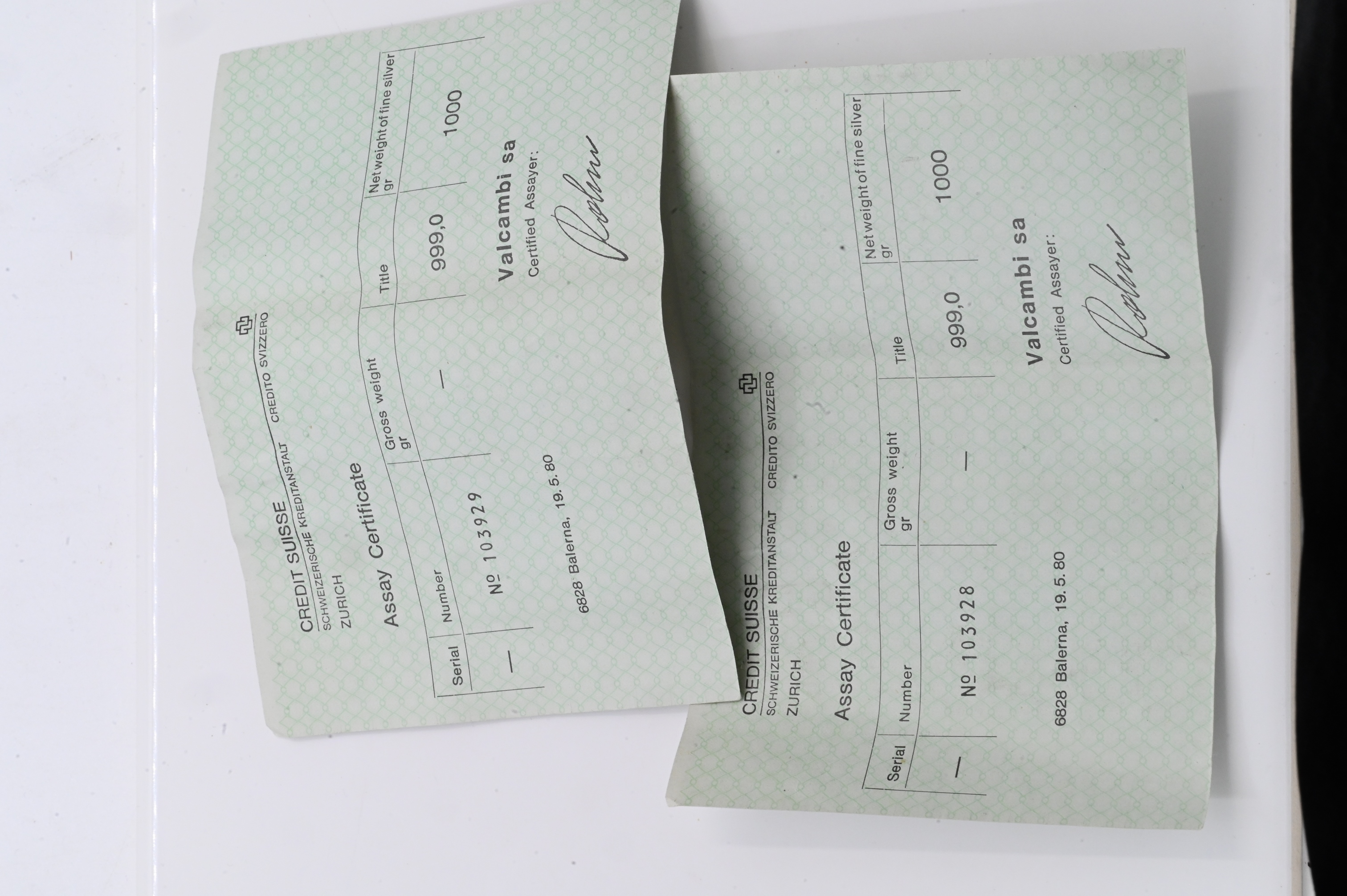 Lot 337: Two Credit Suisse 1 Kilo Silver Bars
