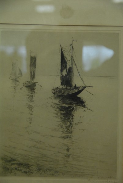 Lot 337: Two etchings to include William Anderson Sherwood 1875-1951 sailing vessels signed lower right and New York signed lower right ind…