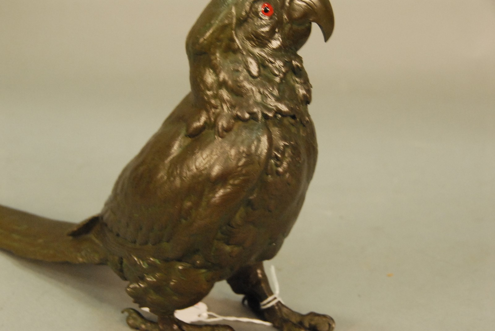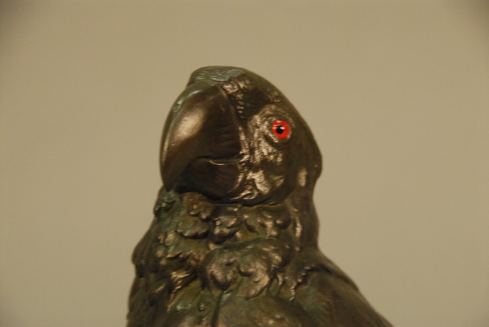 Austrian bronze parrot with red glass eyes, stamped Austria.