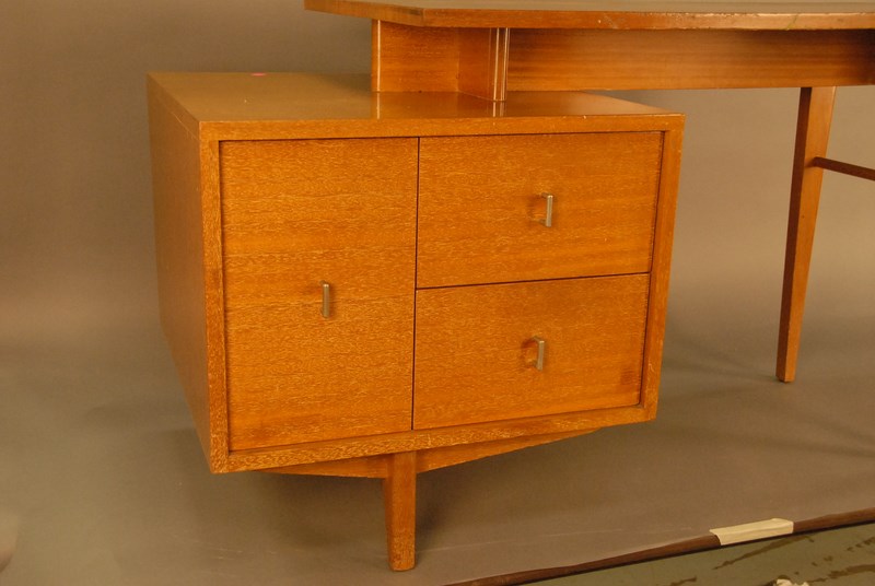 Lot 338: Brown Saltman desk with three drawers, ht. 39 in. lg. 52 1/2 in. dp. 24 in.