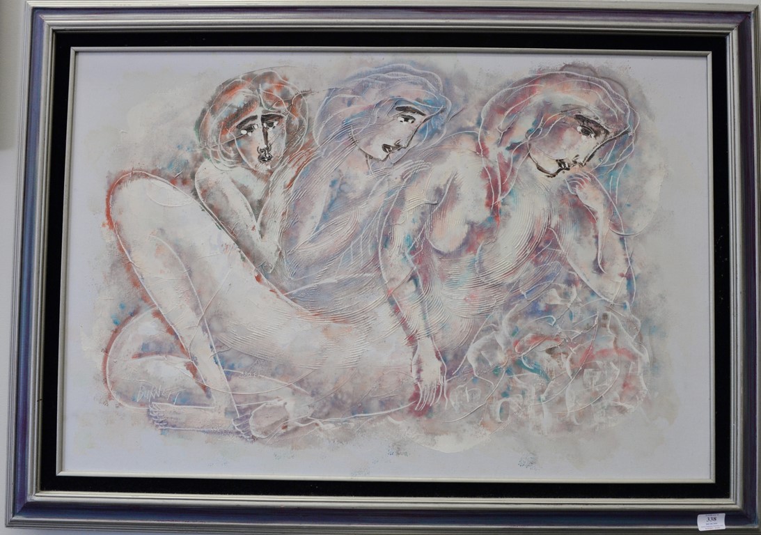 Lot 338: Calvin Waller Burnett 1921-2007, oil on canvas, Three Nude Figures, signed lower left: Burnett, 24 x 36.