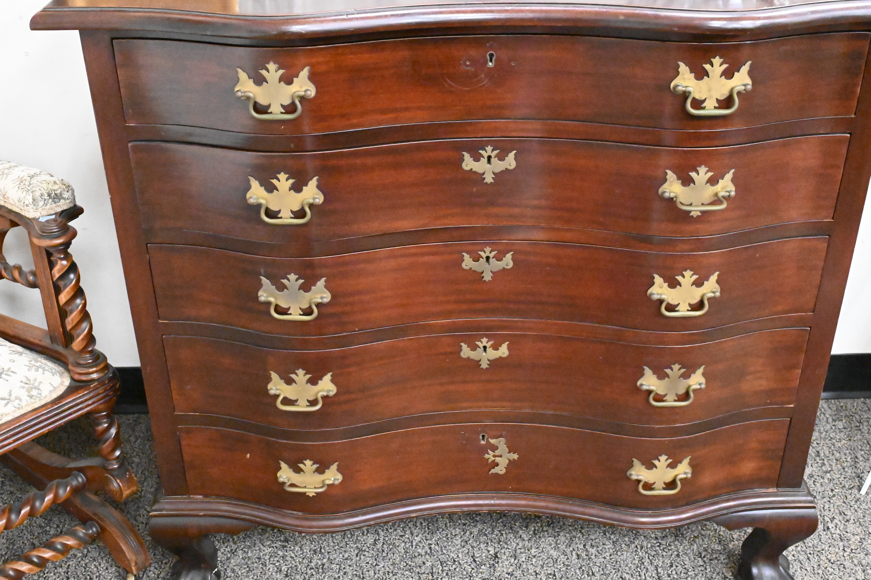 Lot 338: Charak Custom Mahogany Five Drawer Oxbow Chest