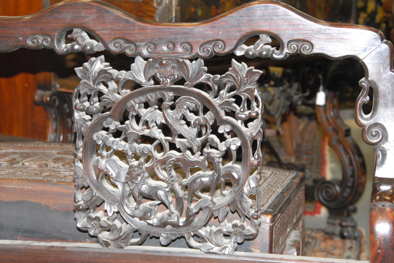 Chinese carved teakwood bench.