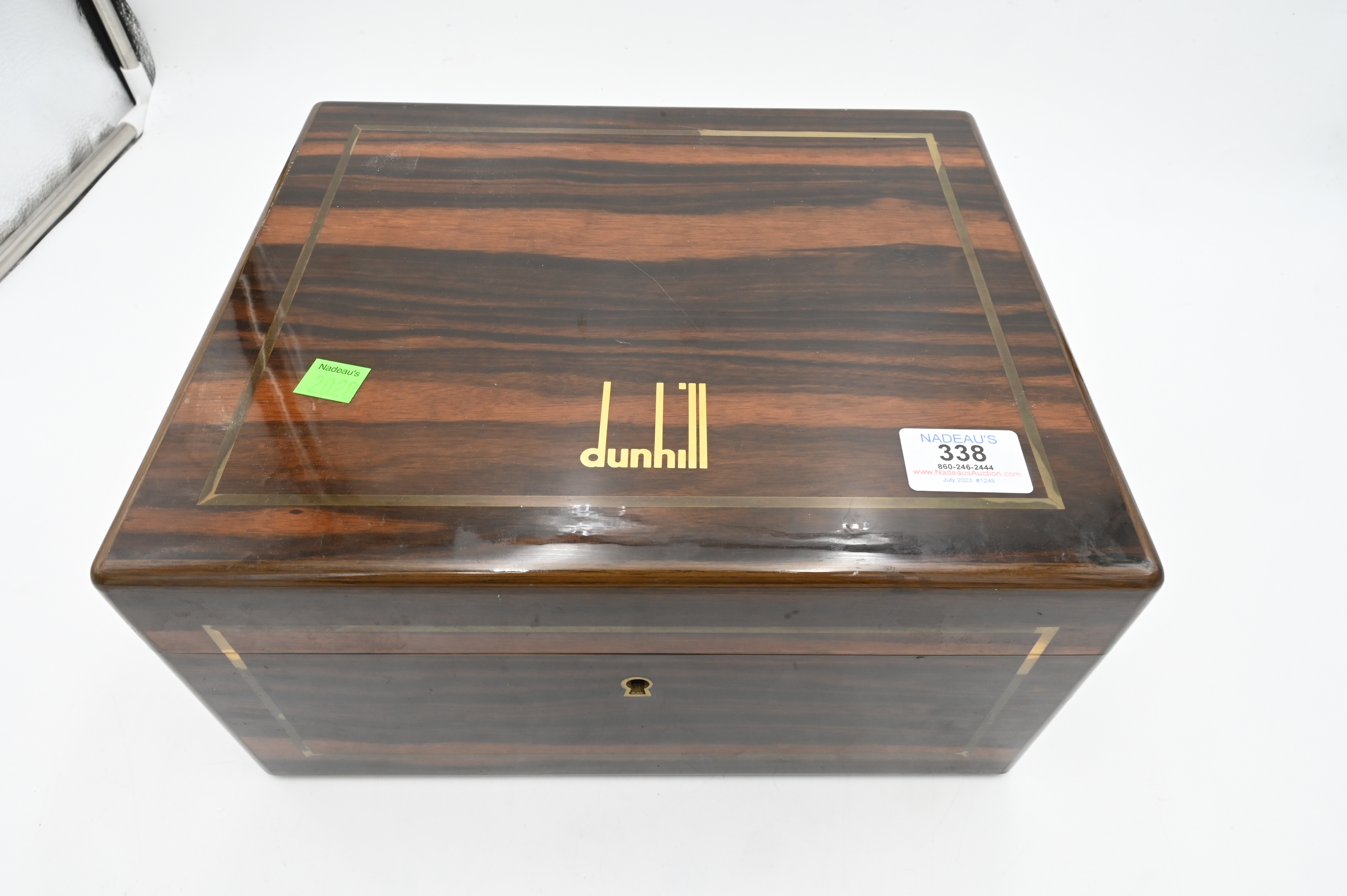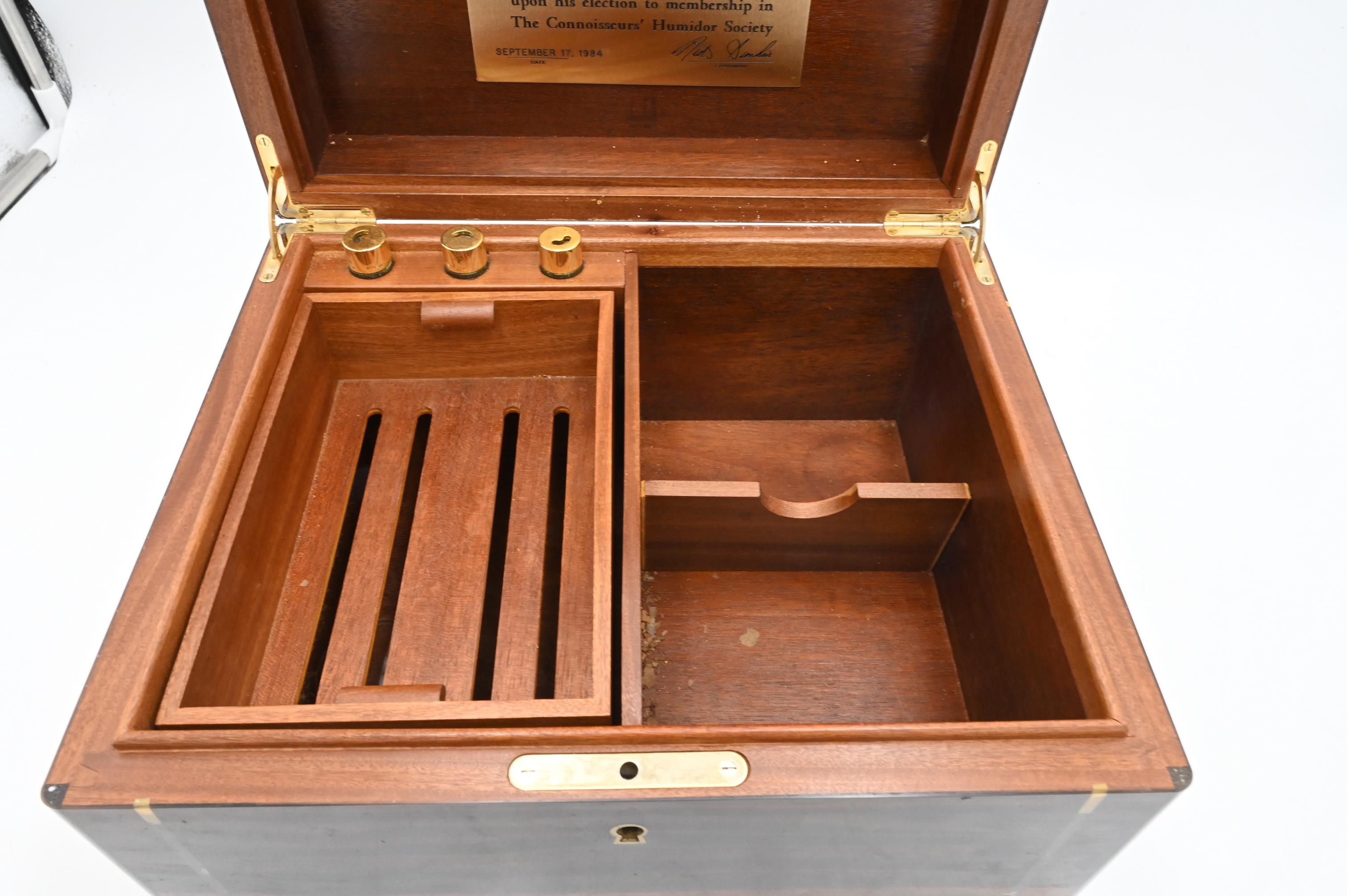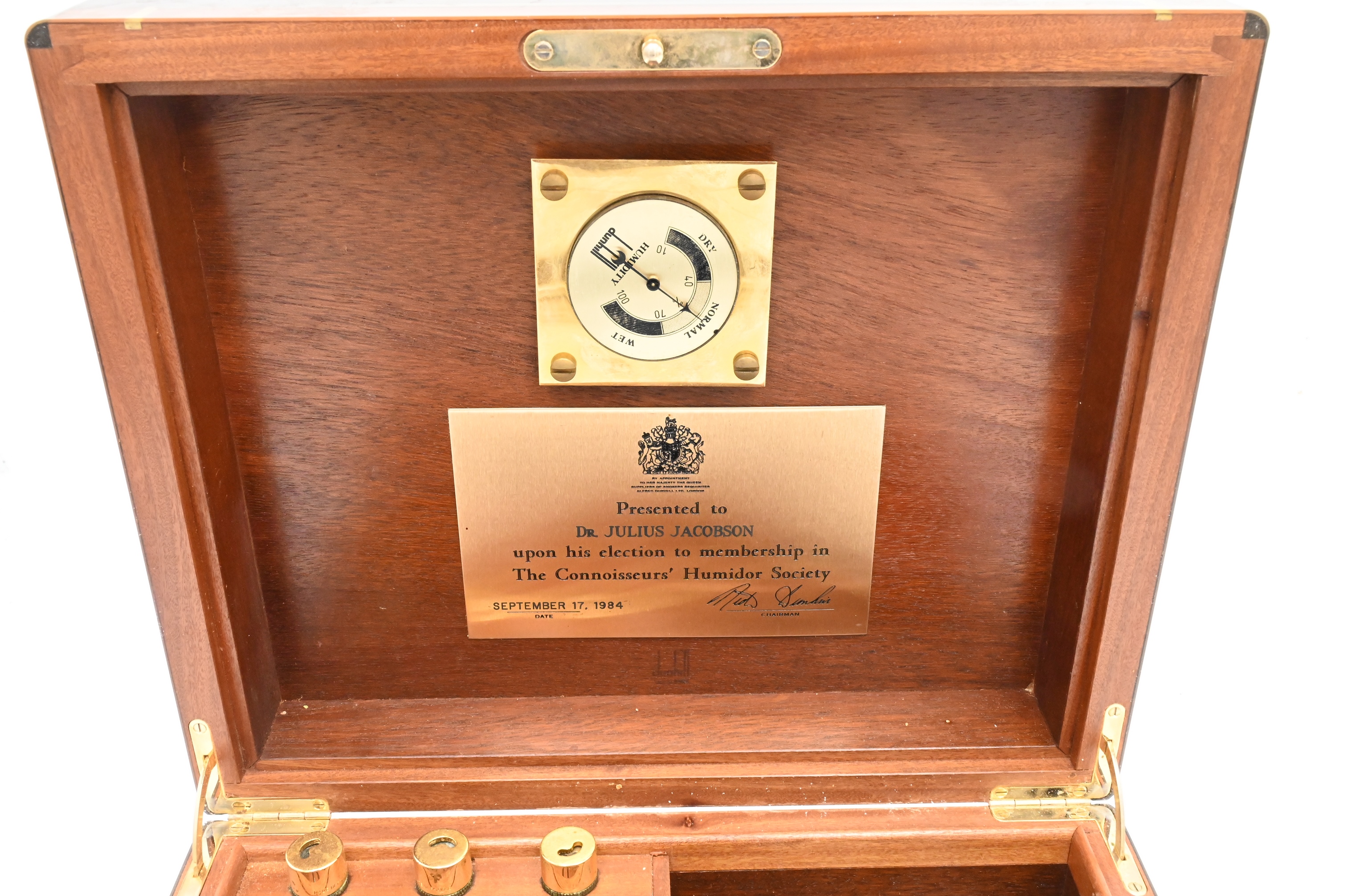 Dunhill Humidor, interior plaque, marked “Presented to Dr. Julius Jacobson upon his election to membership in The Connoisseurs Humidor Society”, height 6 inches, top 10 1/4″ x 12 1/4″, Provenance: Julius H Jacobson II a Fifth Avenue Estate.