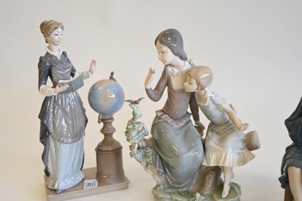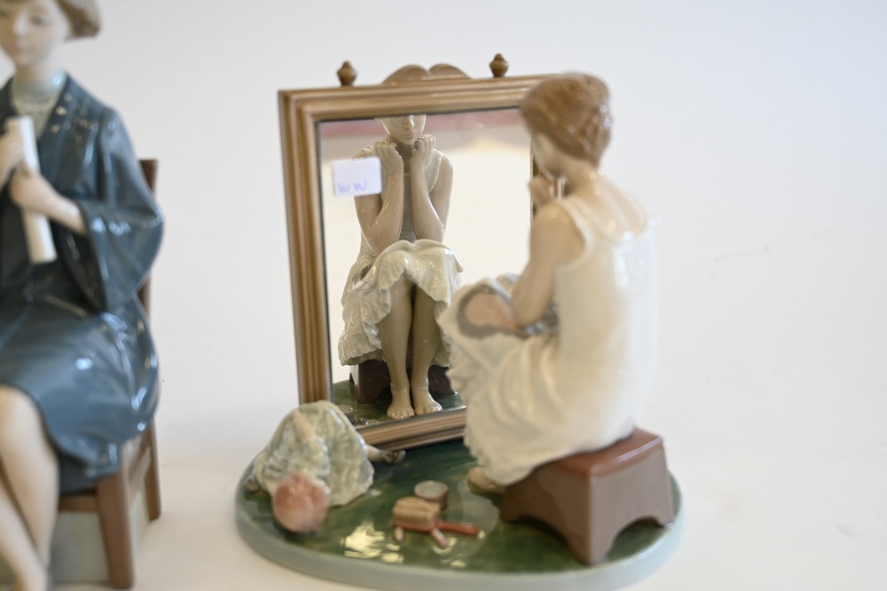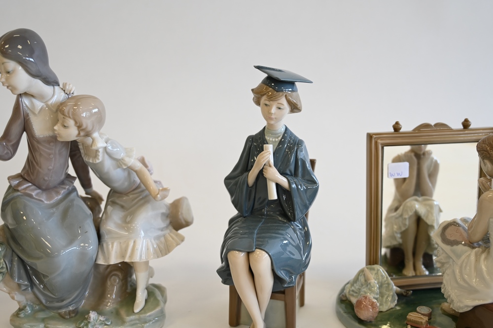 Four piece lot of Lladro porcelain figures, to include “Graduda”, “Hermanitas contemplativas”, “Rockwell’s Day Dreamer”, and “Maestr…