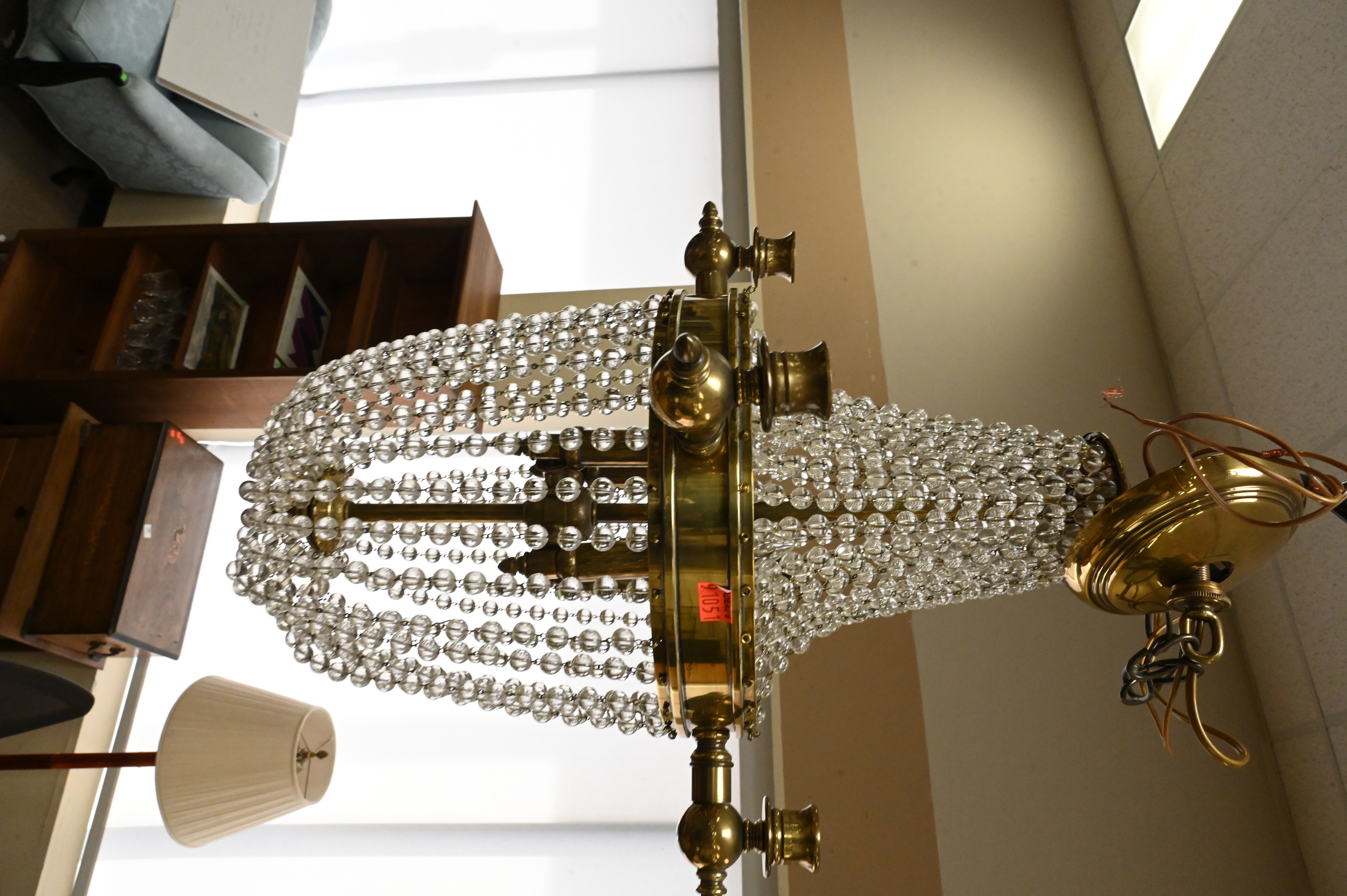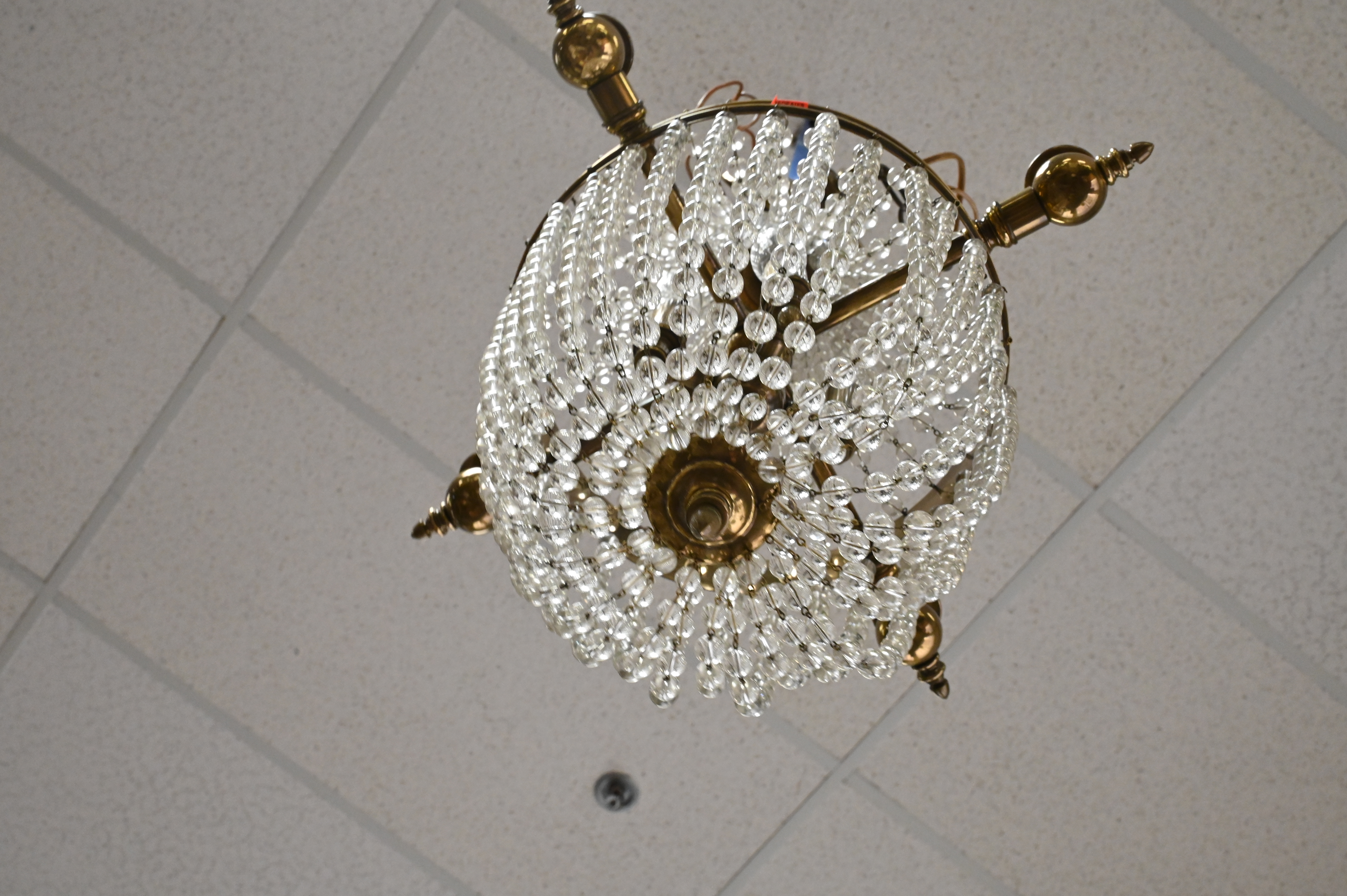 having four lights with brass frame and beaded crystal strands