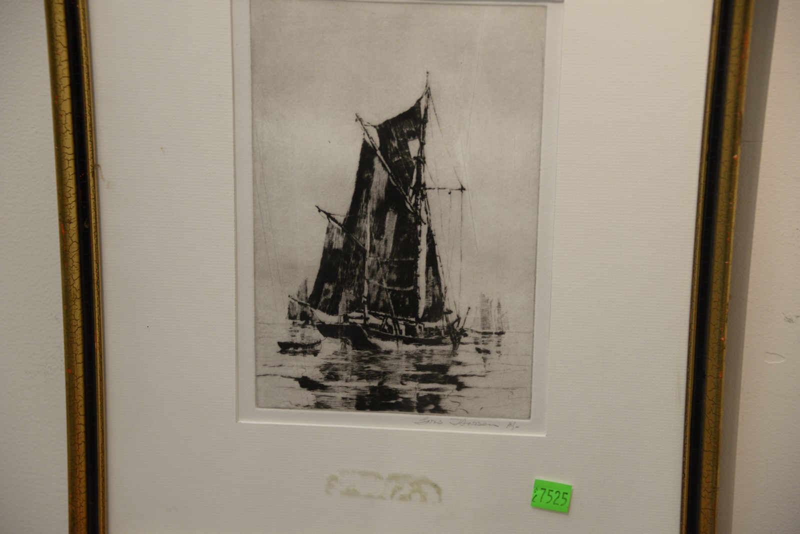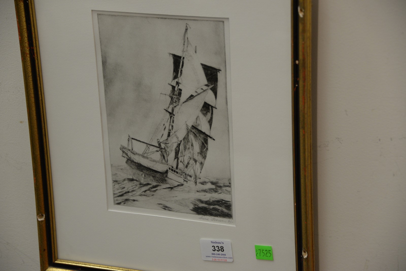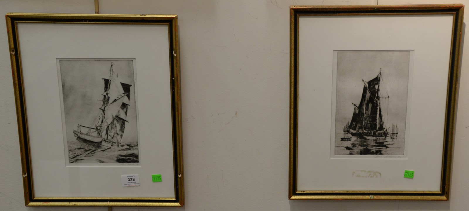 Lot 338: Lars Thorsen 1876-1952 pair of etchings Ship at Sea and Heading Out pencil signed lower right.8 3/4 x 5 3/4