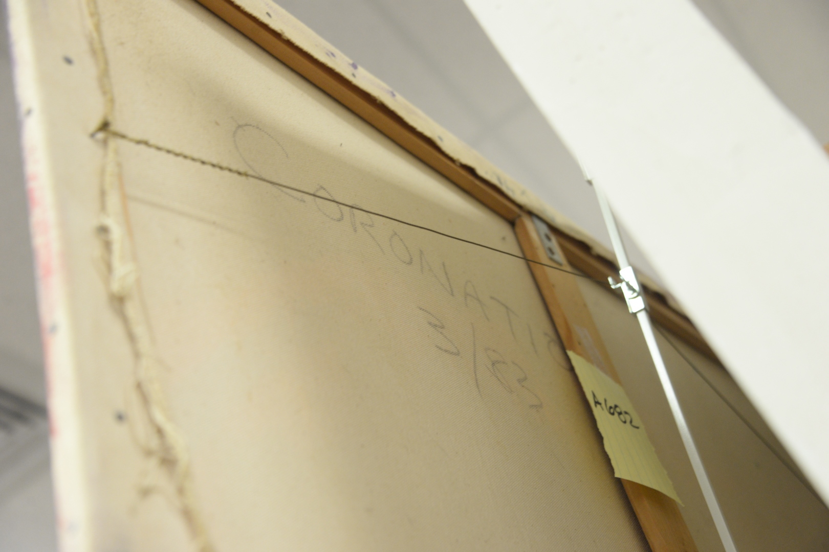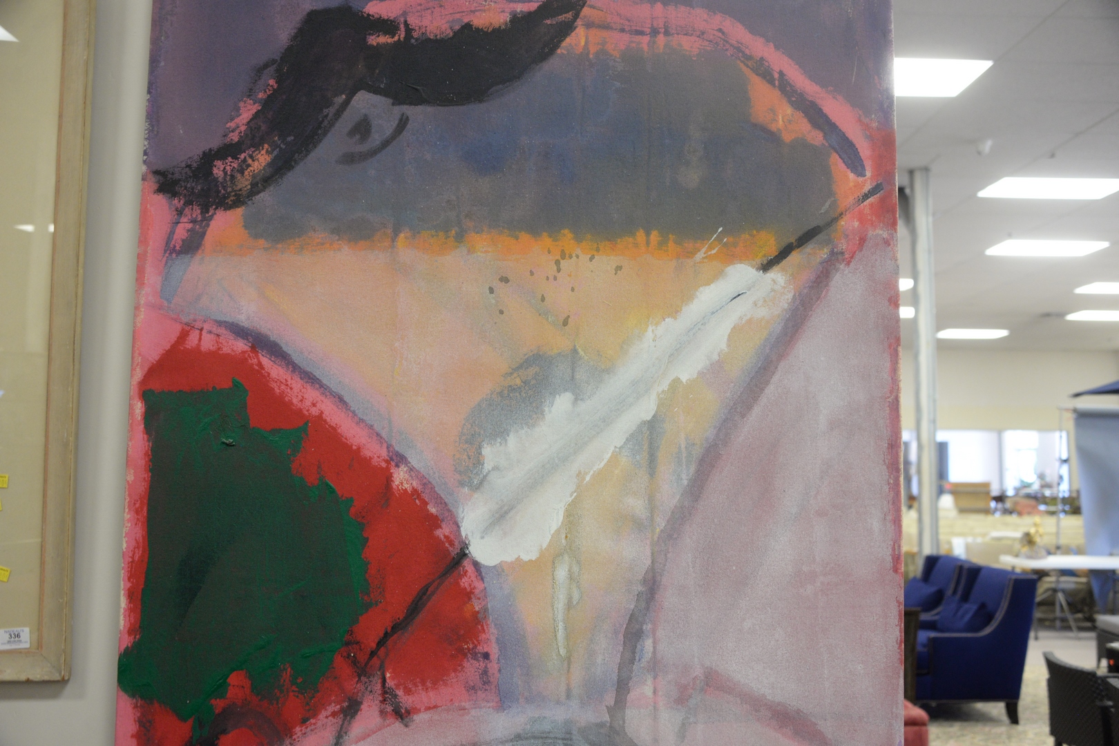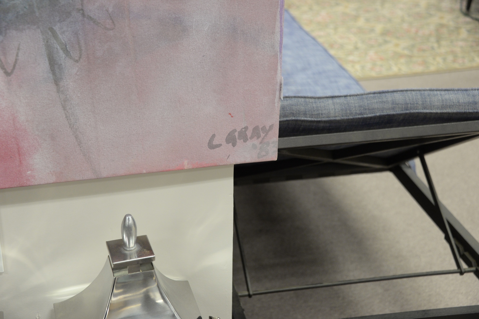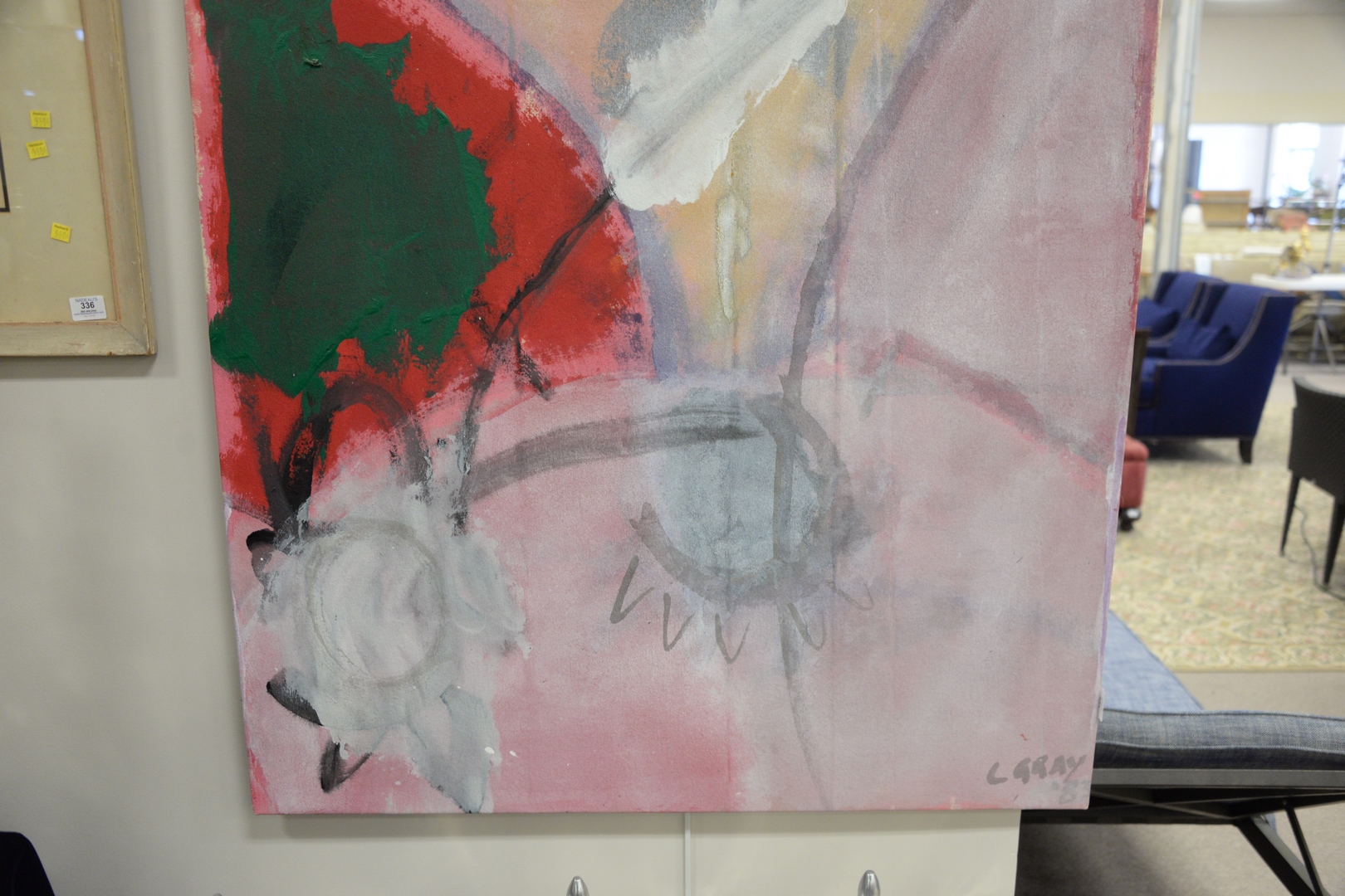Lot 338: Luke Grey (American, b. 1961), Coronation, acrylic on canvas, signed and dated lower right “L. Gray ’83”, titled on the reverse, 65″ x 39 1/2″.