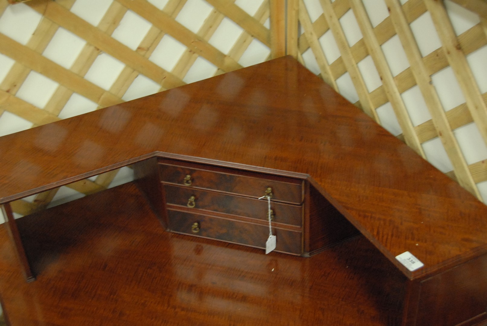 Margolis corner table with fiddleback mahogany ht. 27 1/2