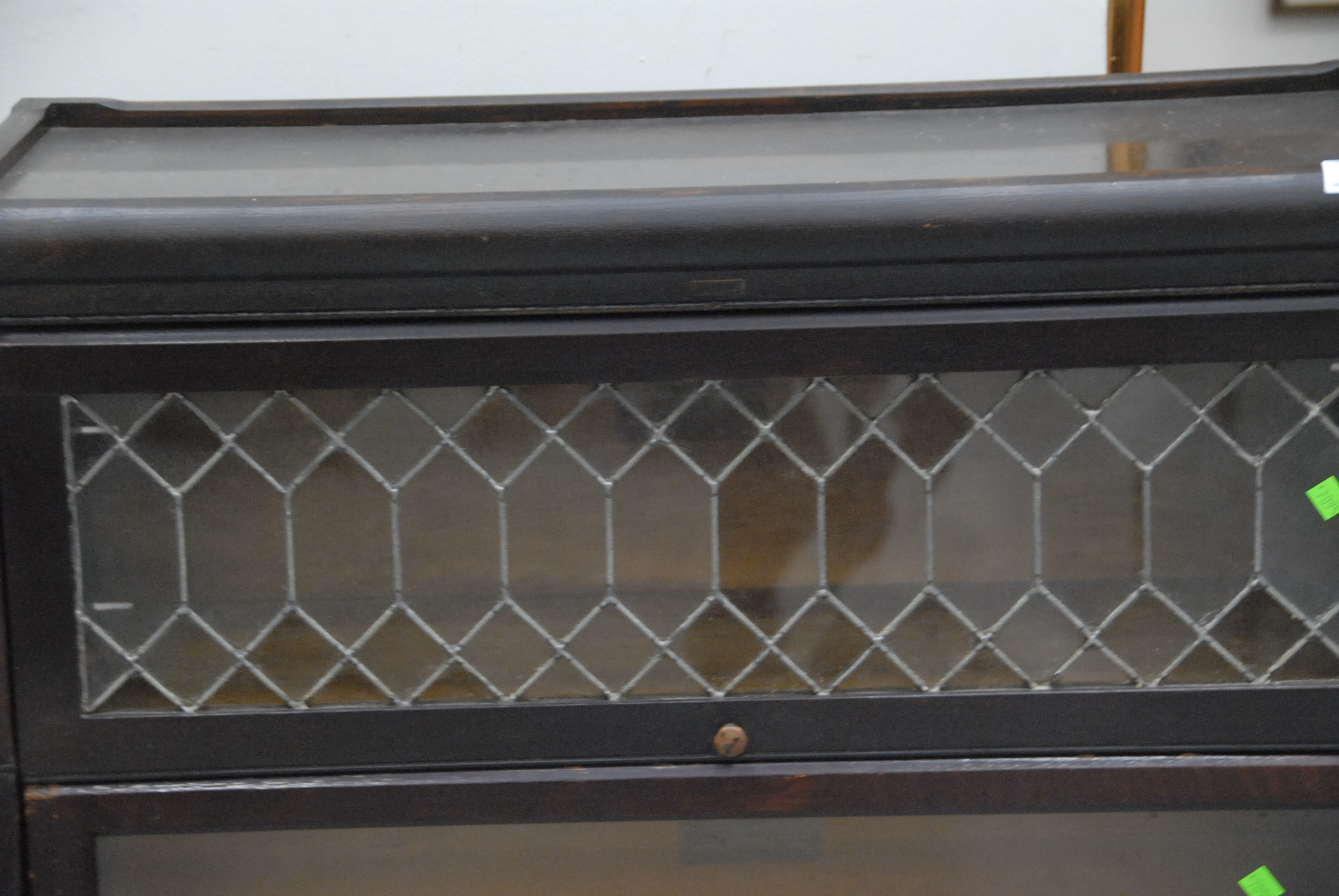 Lot 338: Oak three section stacking bookcase, top door leaded, ht. 47in. wd. 33in.