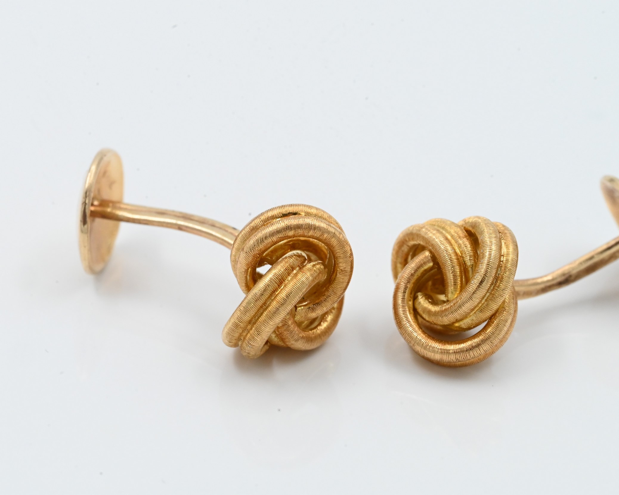 Lot 338: Pair 18K Yellow Gold Cufflinks in Knot Style