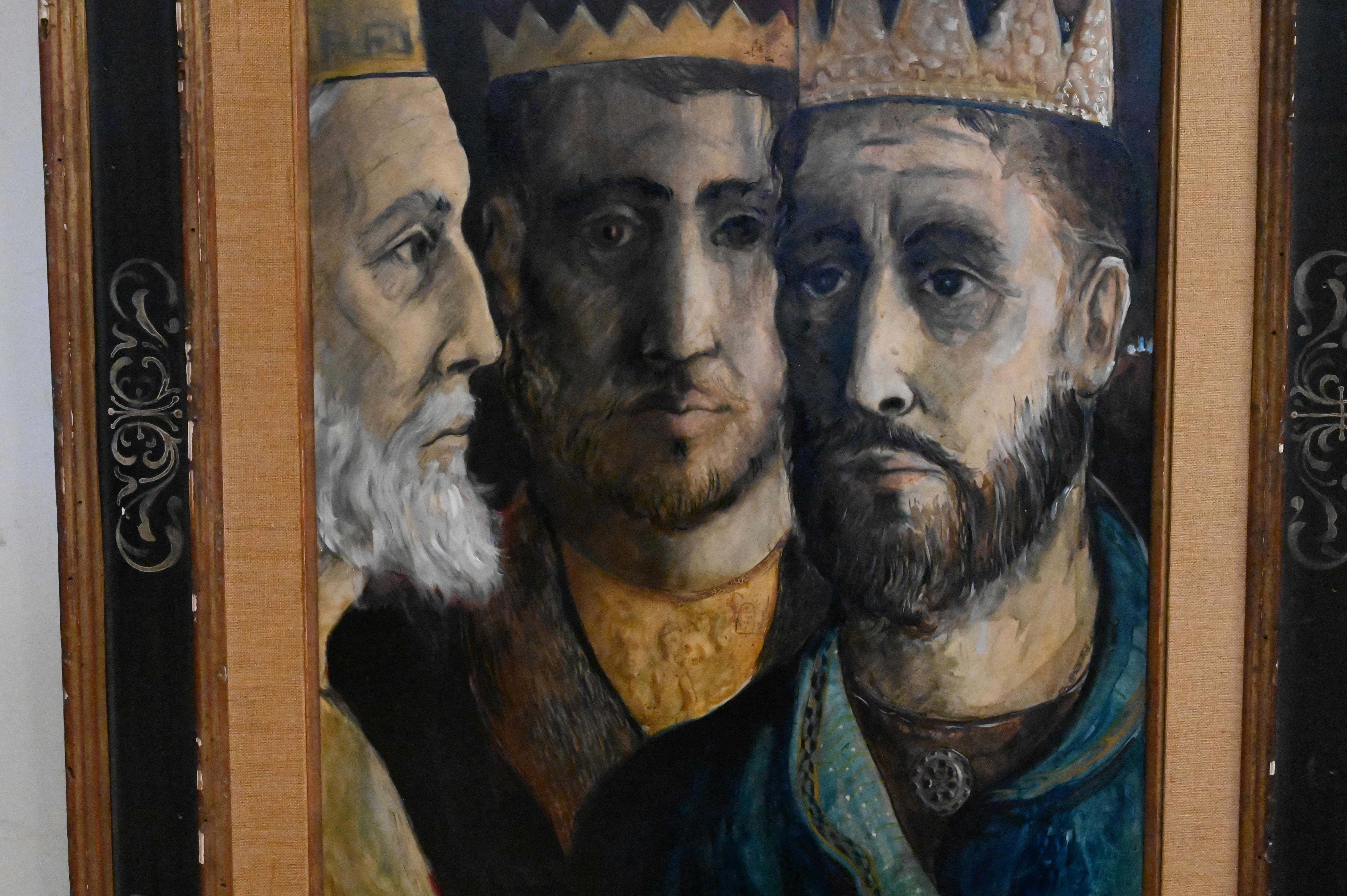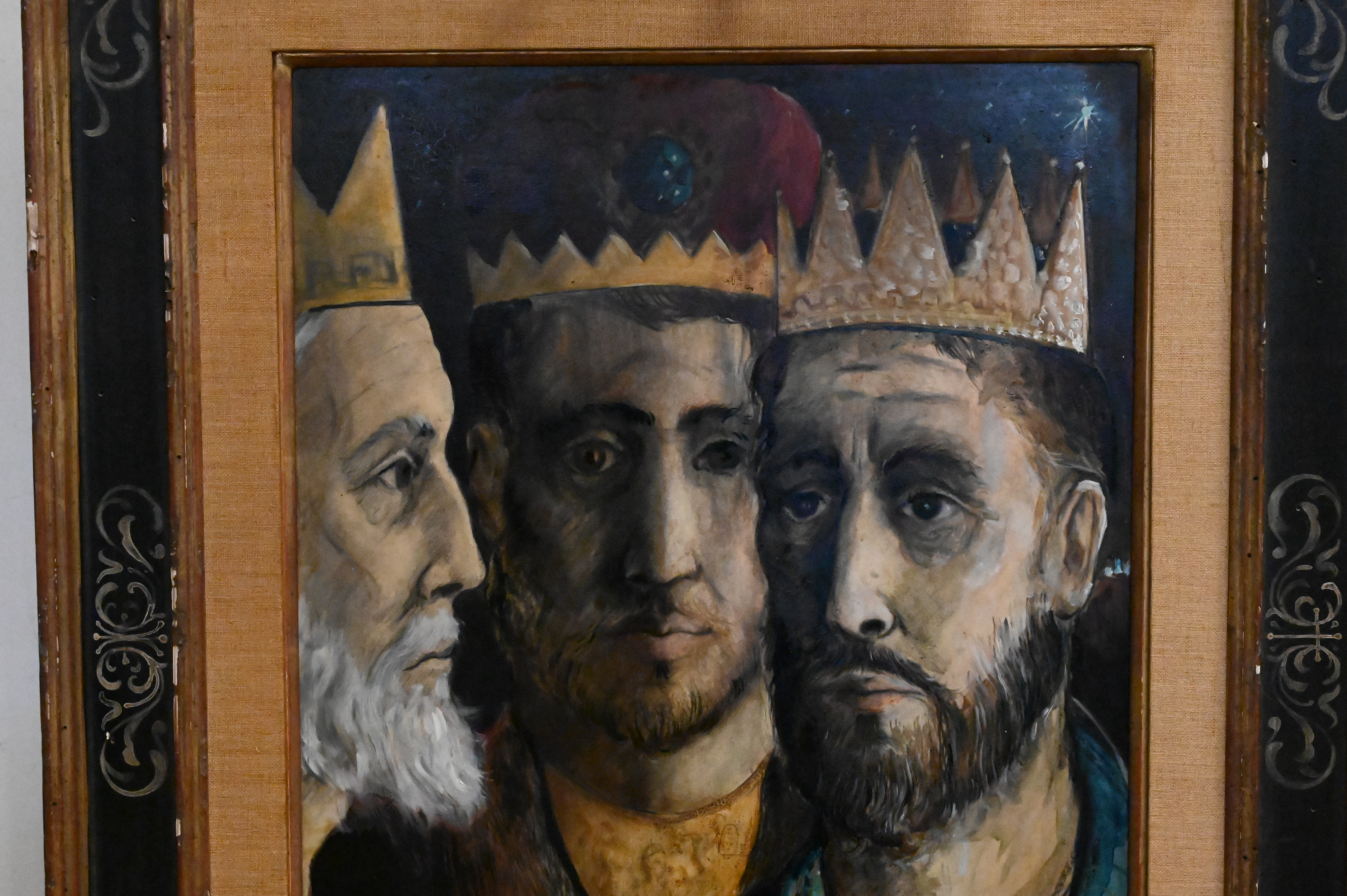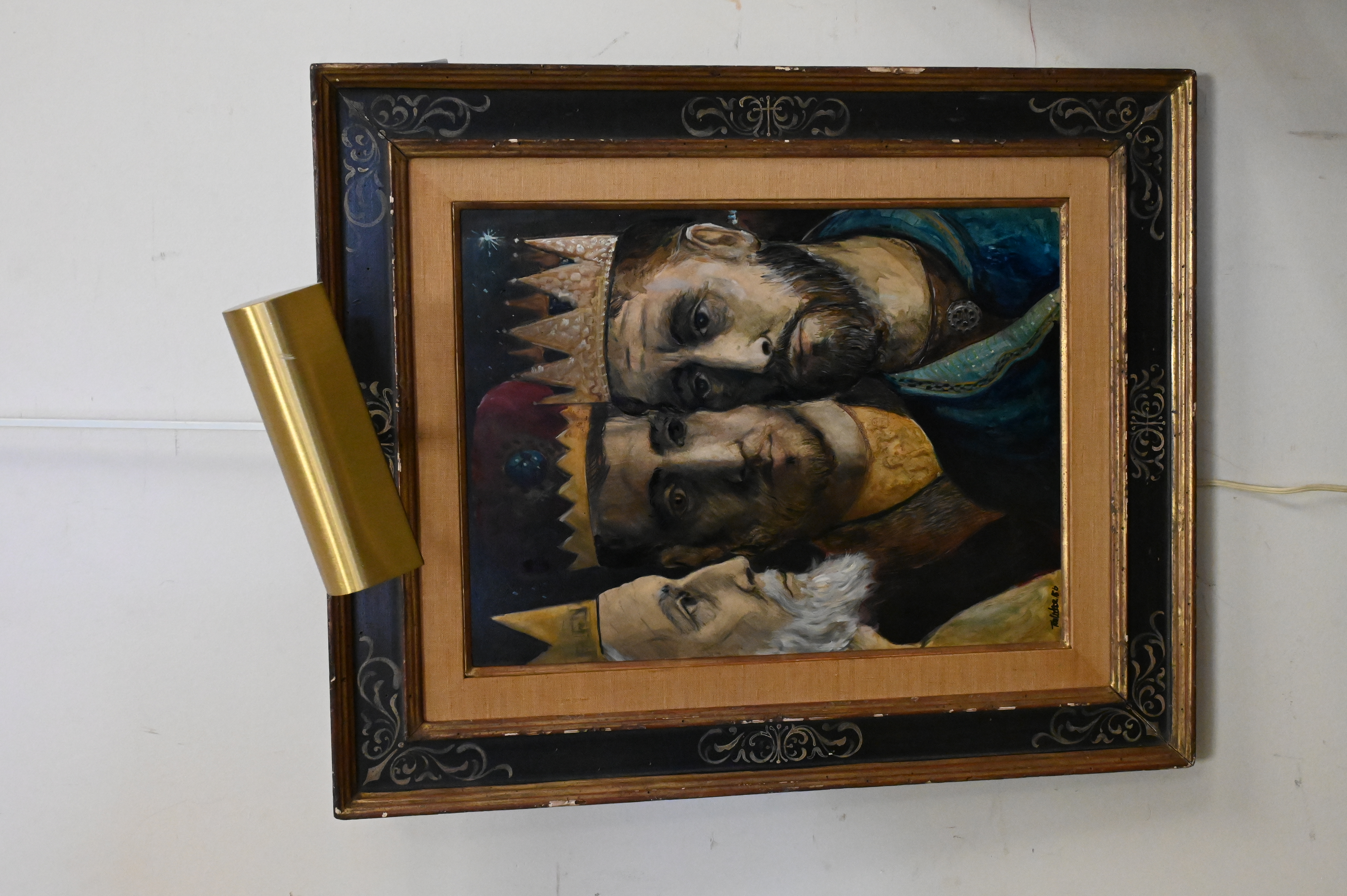 Thomas Locker (American 1937-2012) “The Three Kings” oil on panel painted wood frame sight 19″x 14″