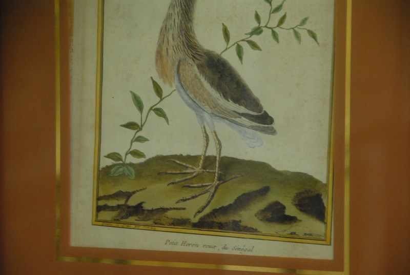 Two hand colored engravings by Francois Nicolas Martinet 1731-1790 to include Sarcelle de Cayenne and Petit Heron Roux, du Senegal, size 8 x 7.