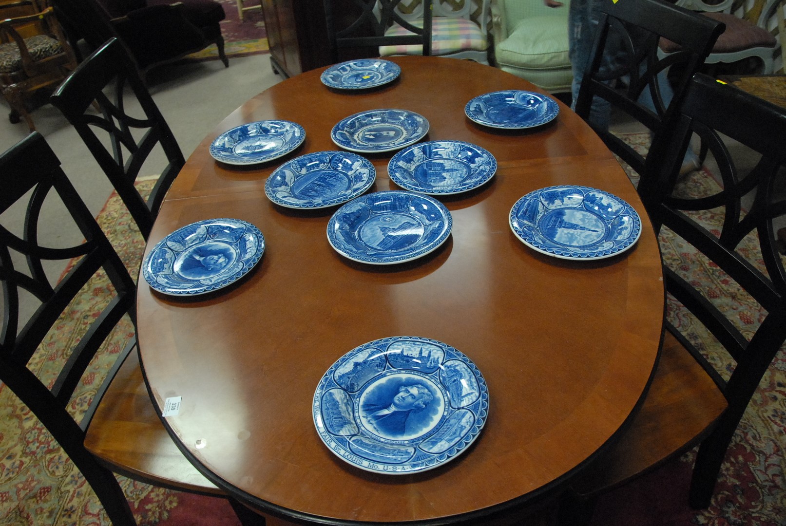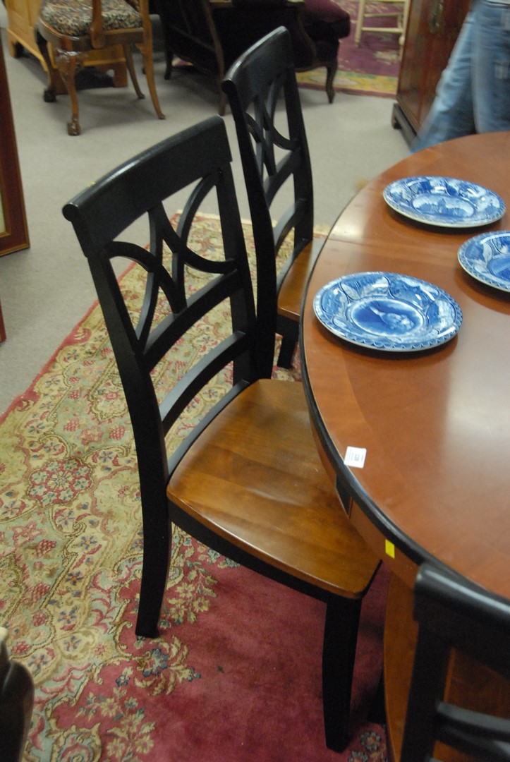 Lot 339: Contemporary oval table with two leaves and six chairs. ht. 30 in.