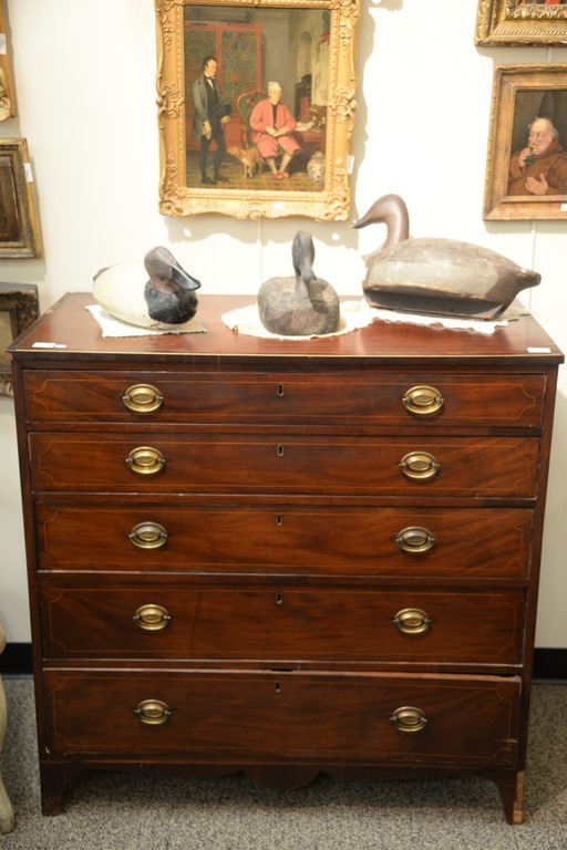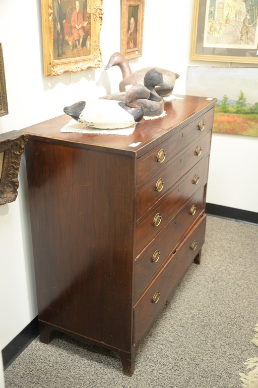 Federal mahogany five drawer chest, circa 1800. ht. 41in., wd. 40in., dp. 20in.