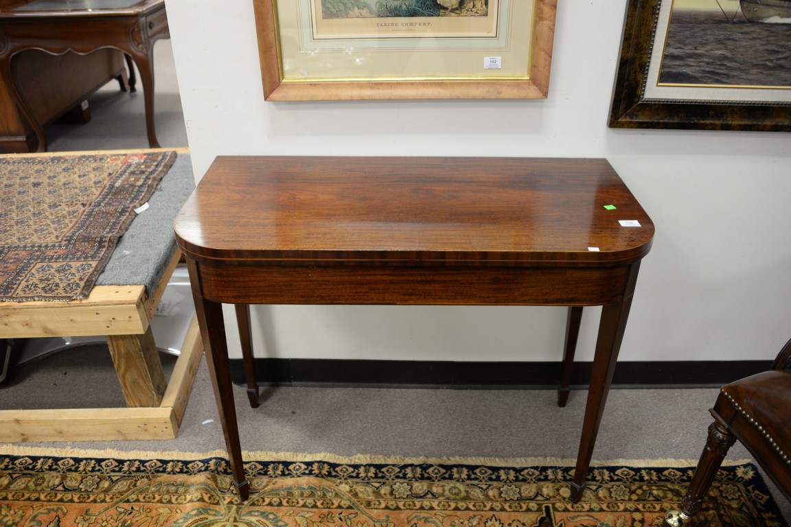 George III mahogany game table with felt interior, circa 1800. ht. 29 1/2in., wd. 37in.