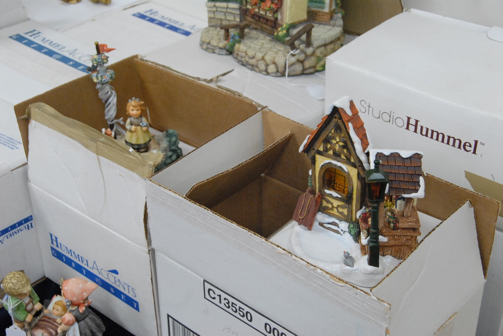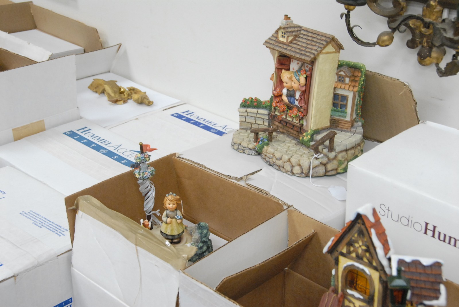 Twenty seven Accent Hummels, Hummels with accent pieces in the boxes, also three Schmidt figures
