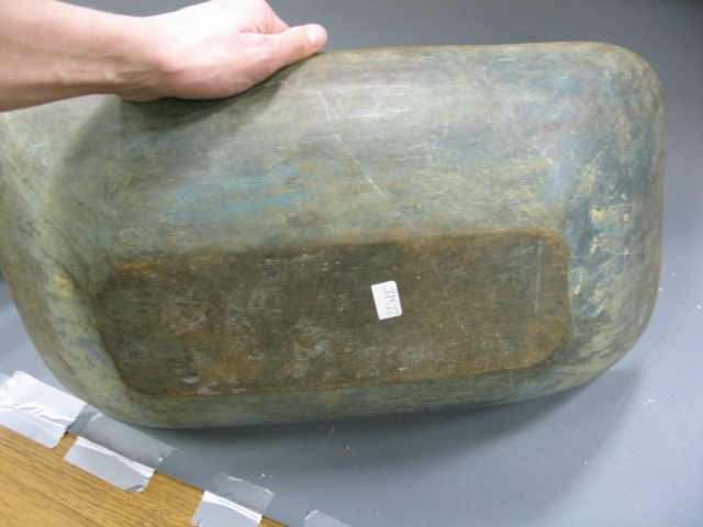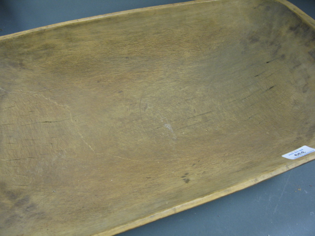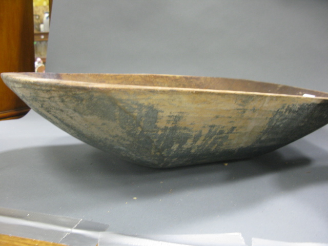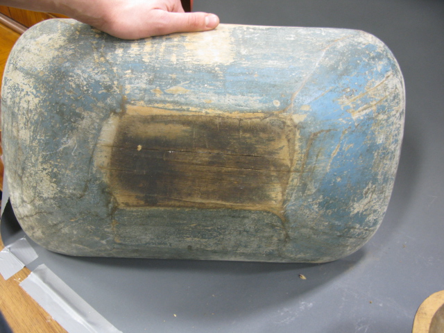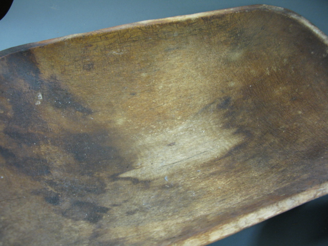 Two primitive rectangular bowls, each with blue/green original paint.