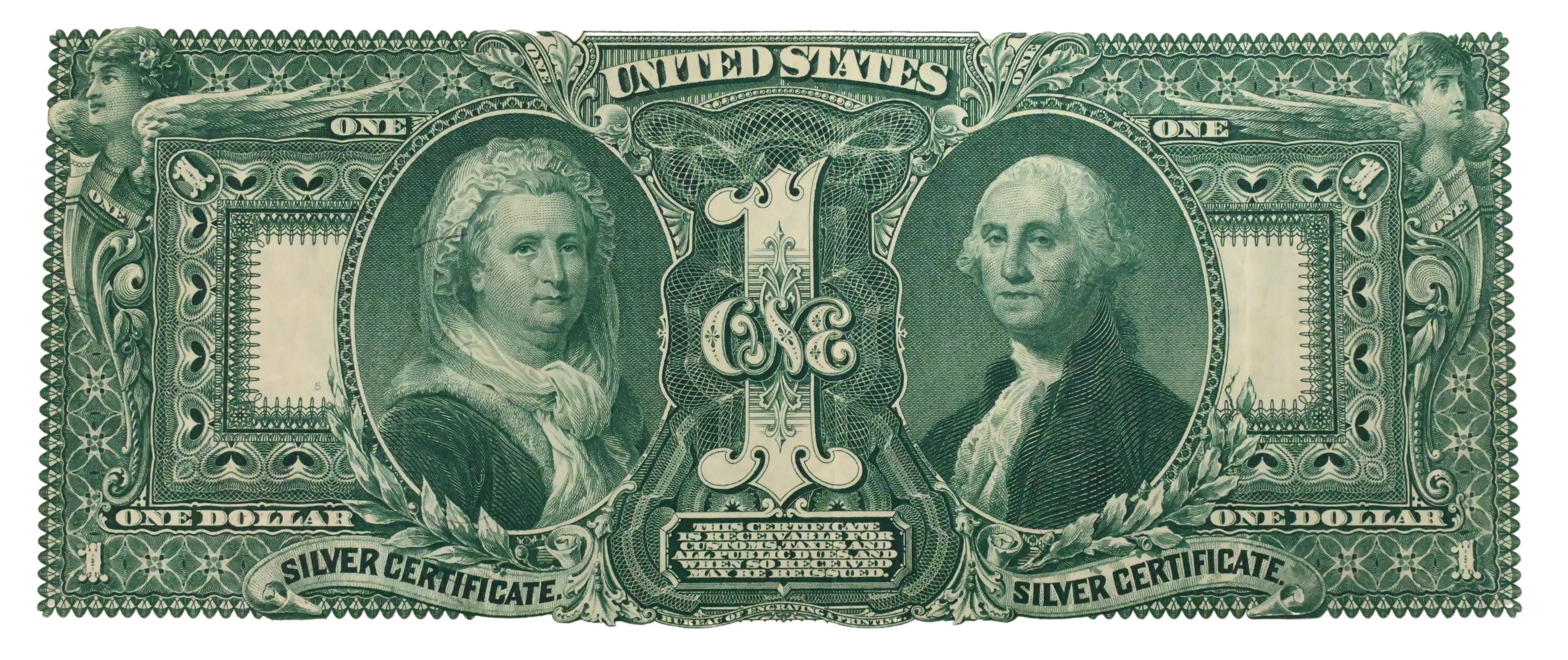 Lot 34: 1896 FR224 $1 Silver Certificate (3 folds) AU+