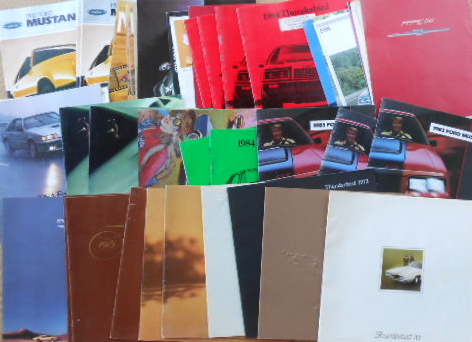 1950’s-1980’s Mustang, Shelby, Thunderbird brochures, 66 items