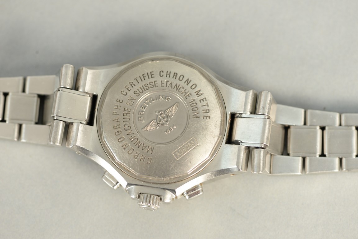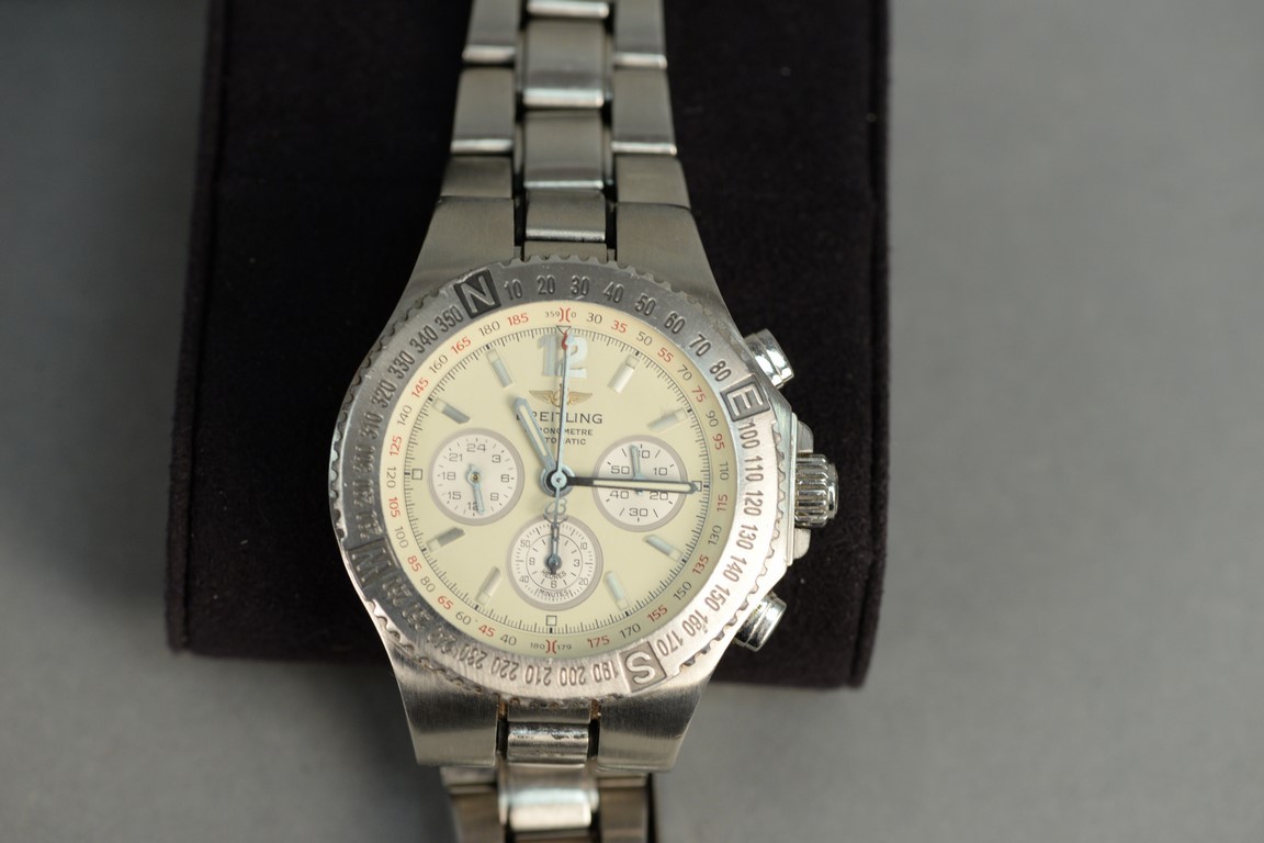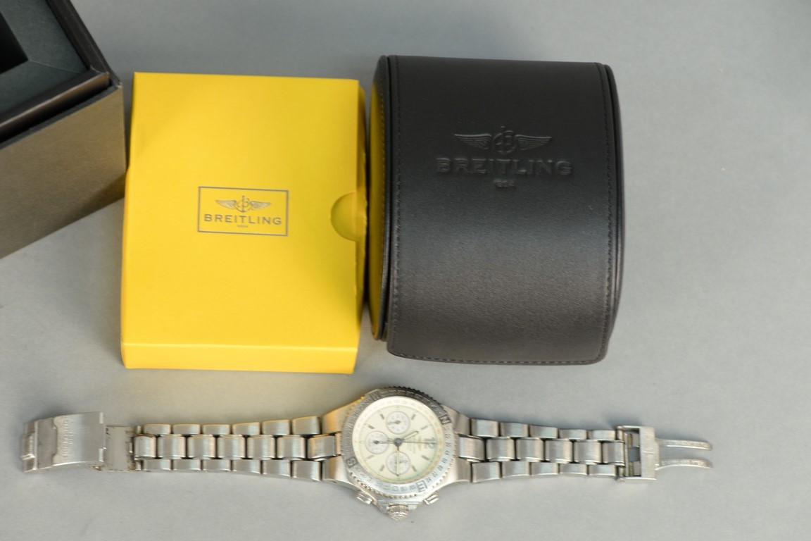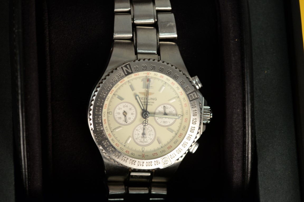Breitling A39363 automatic chronograph with box, stainless steel Hercules. broken clasp.