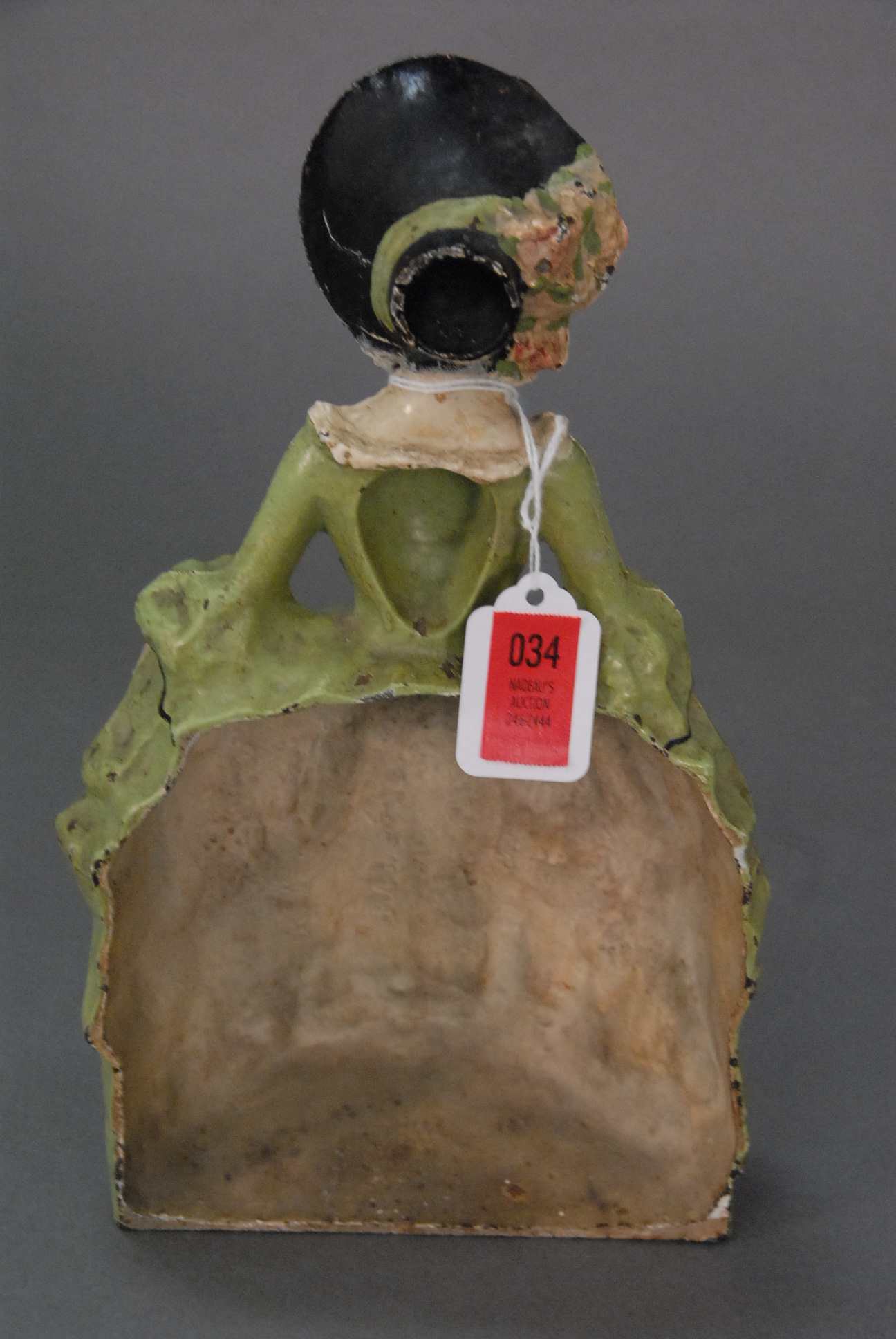 Iron doorstop of woman in Victorian dress and bonnet, ht. 11.