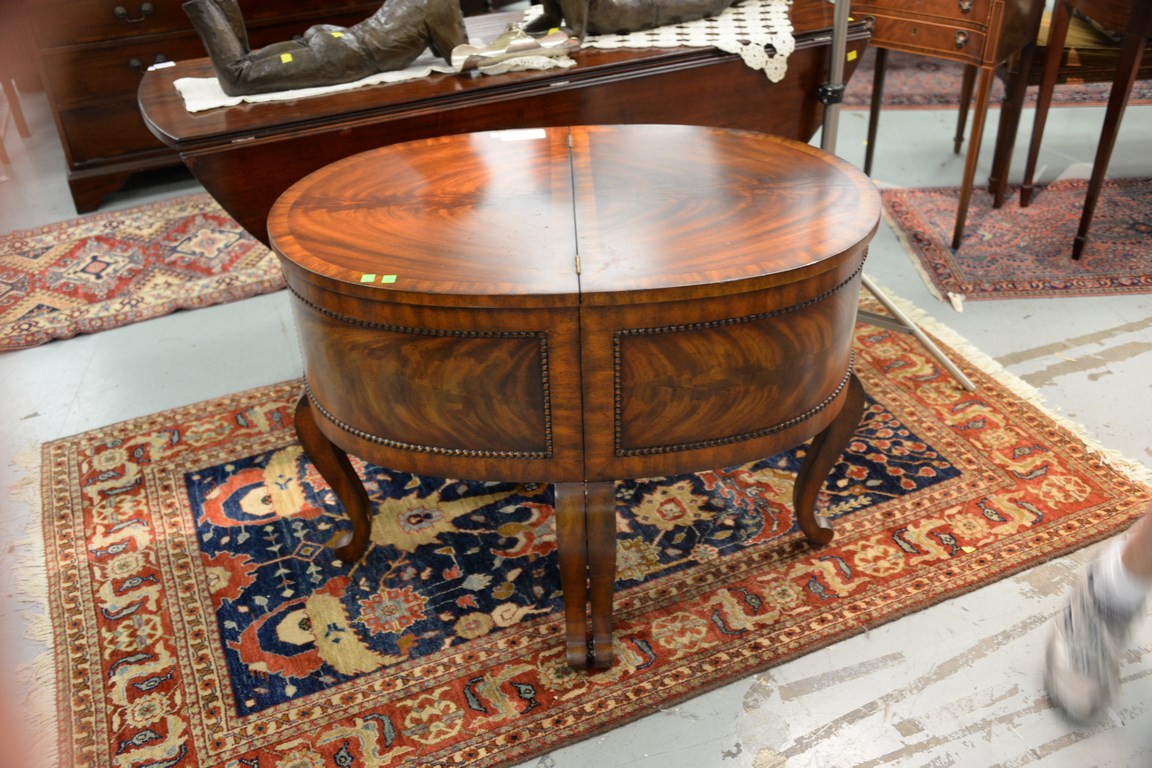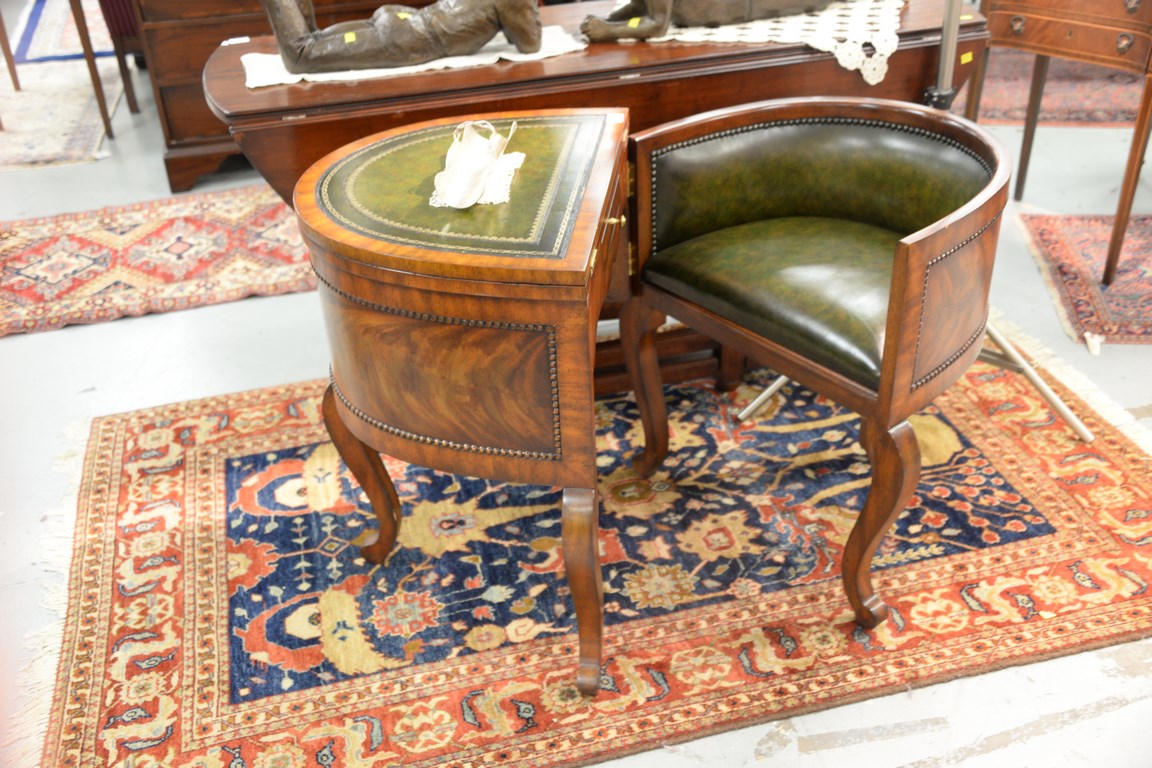 Maitland Smith table, converts to writing table and chair, ht. 29 in. top: 29 x 37.