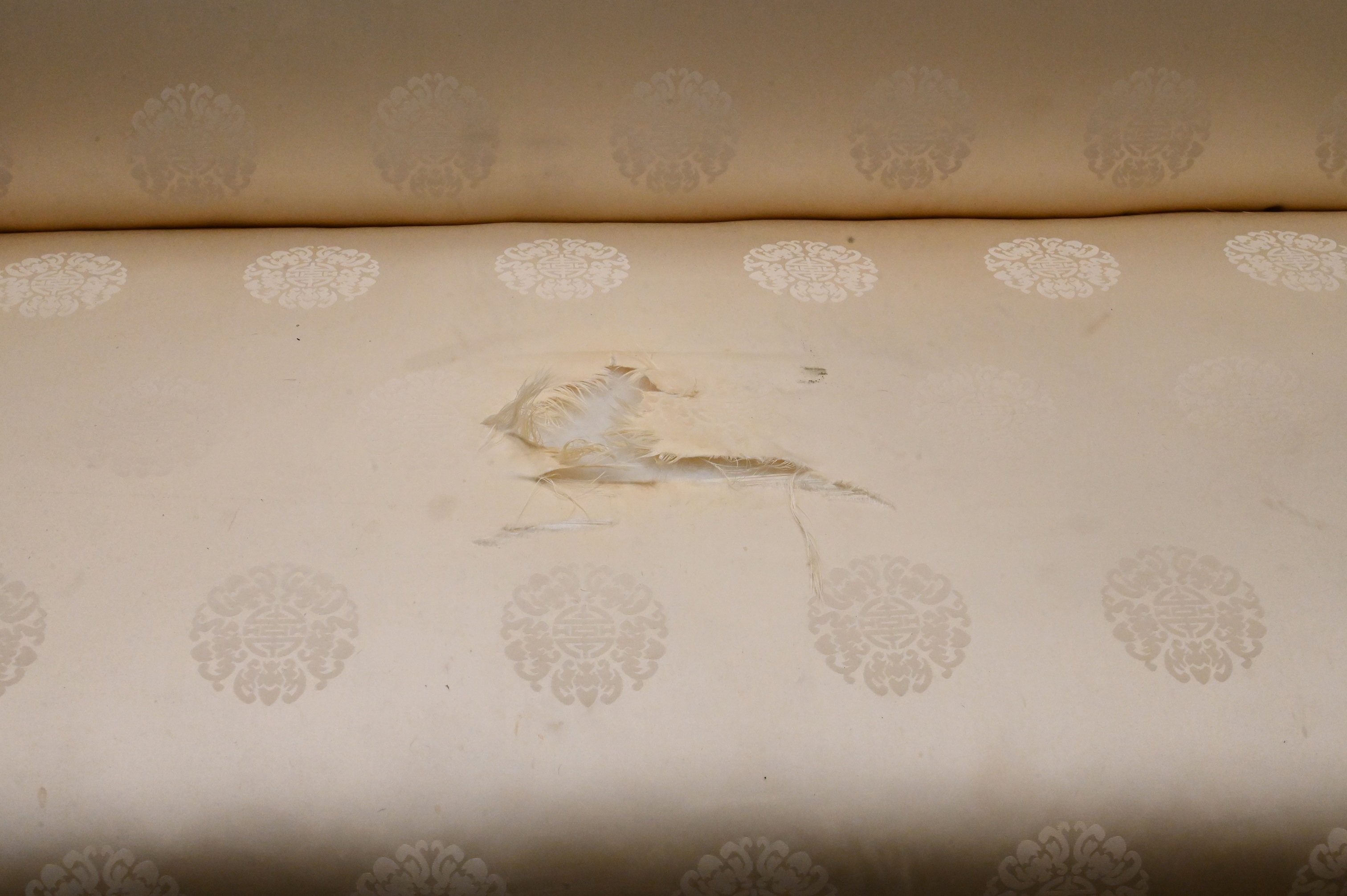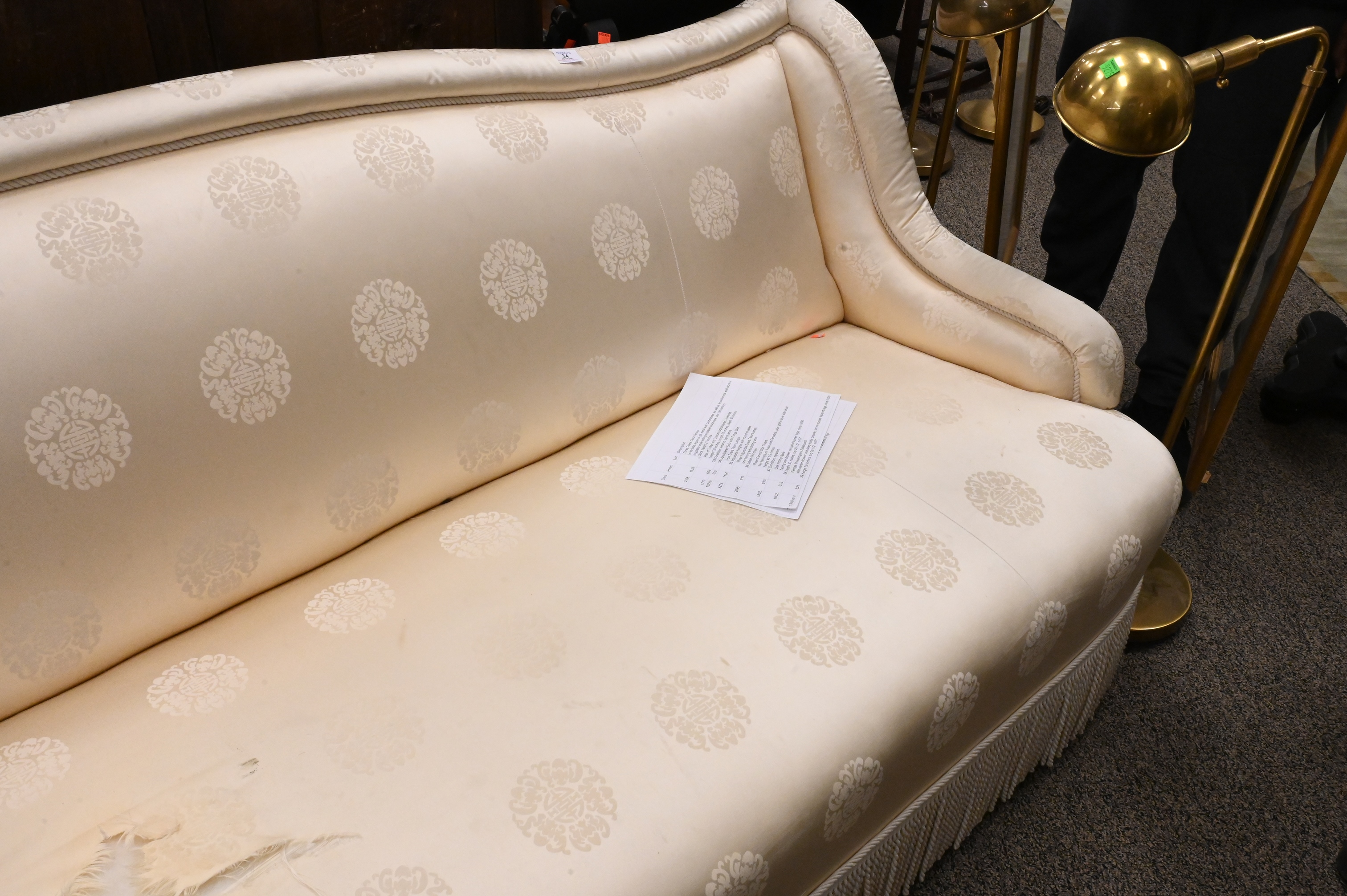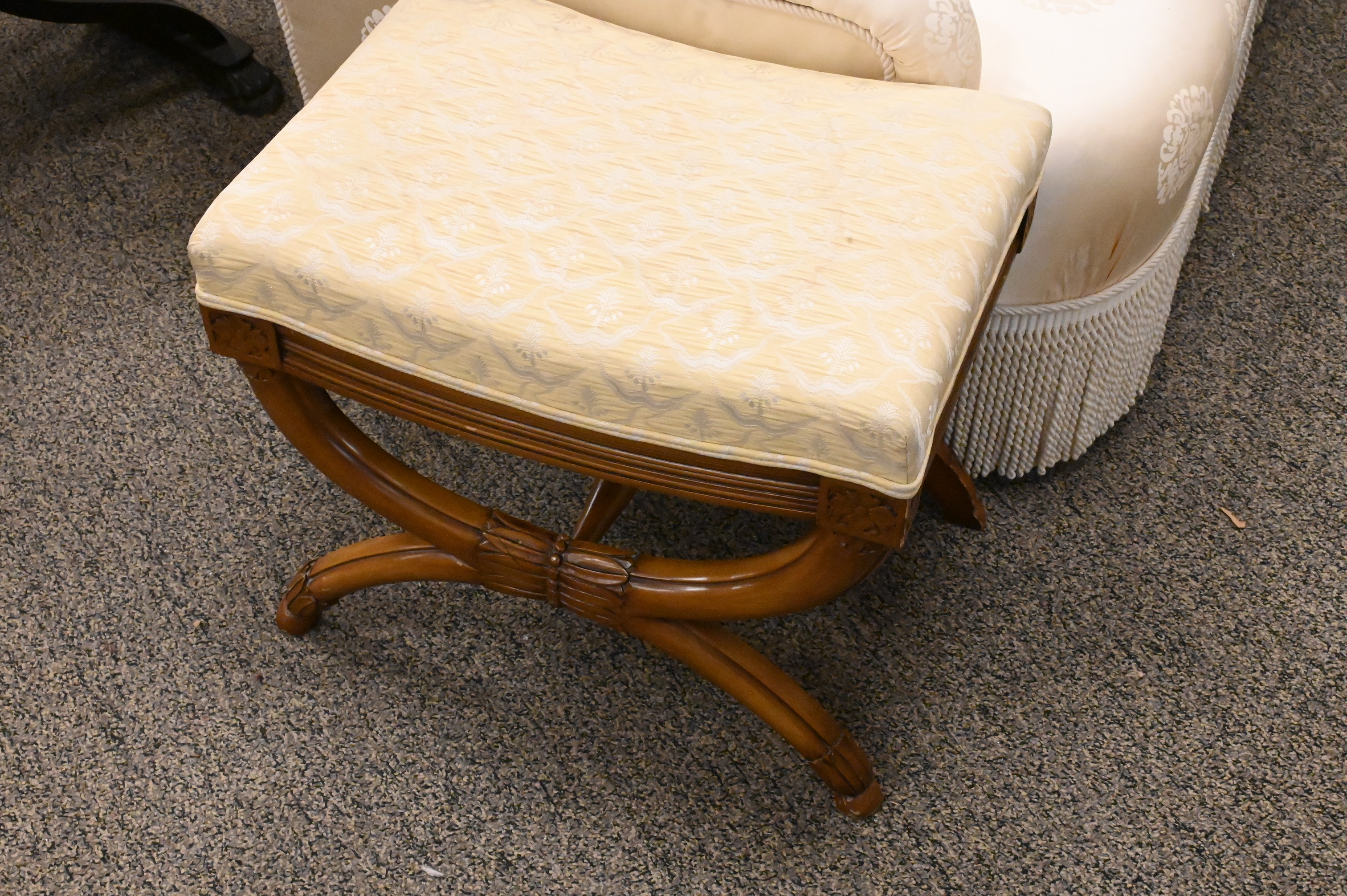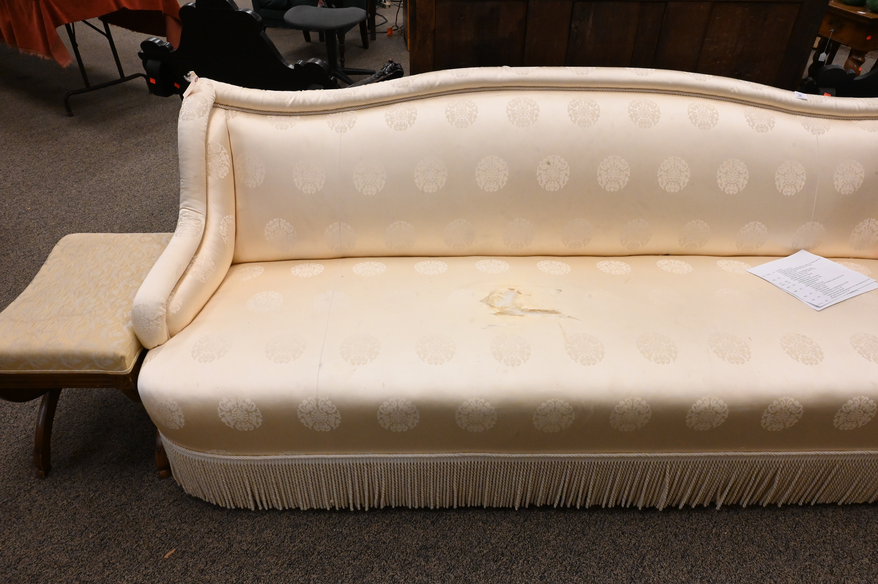 Sofa with Fringe Skirt and Upholstered Stool, length 90 inches