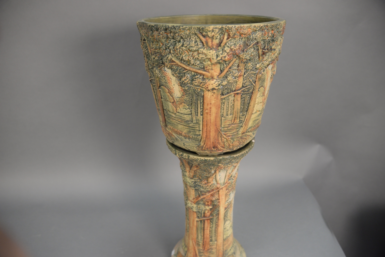 Lot 34: Weller Forest jardinire and pedestal 1918-1935. ht. 28in.