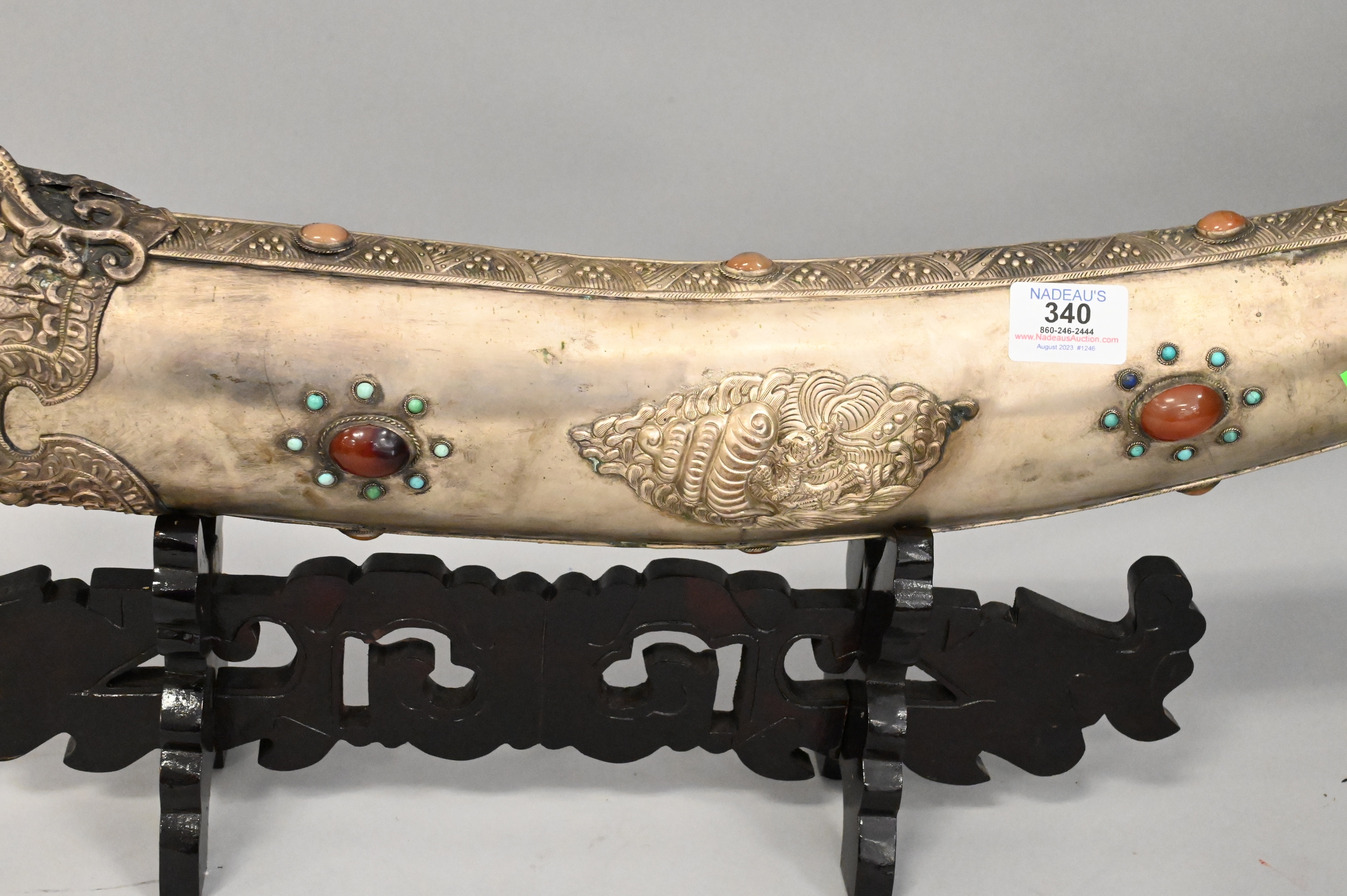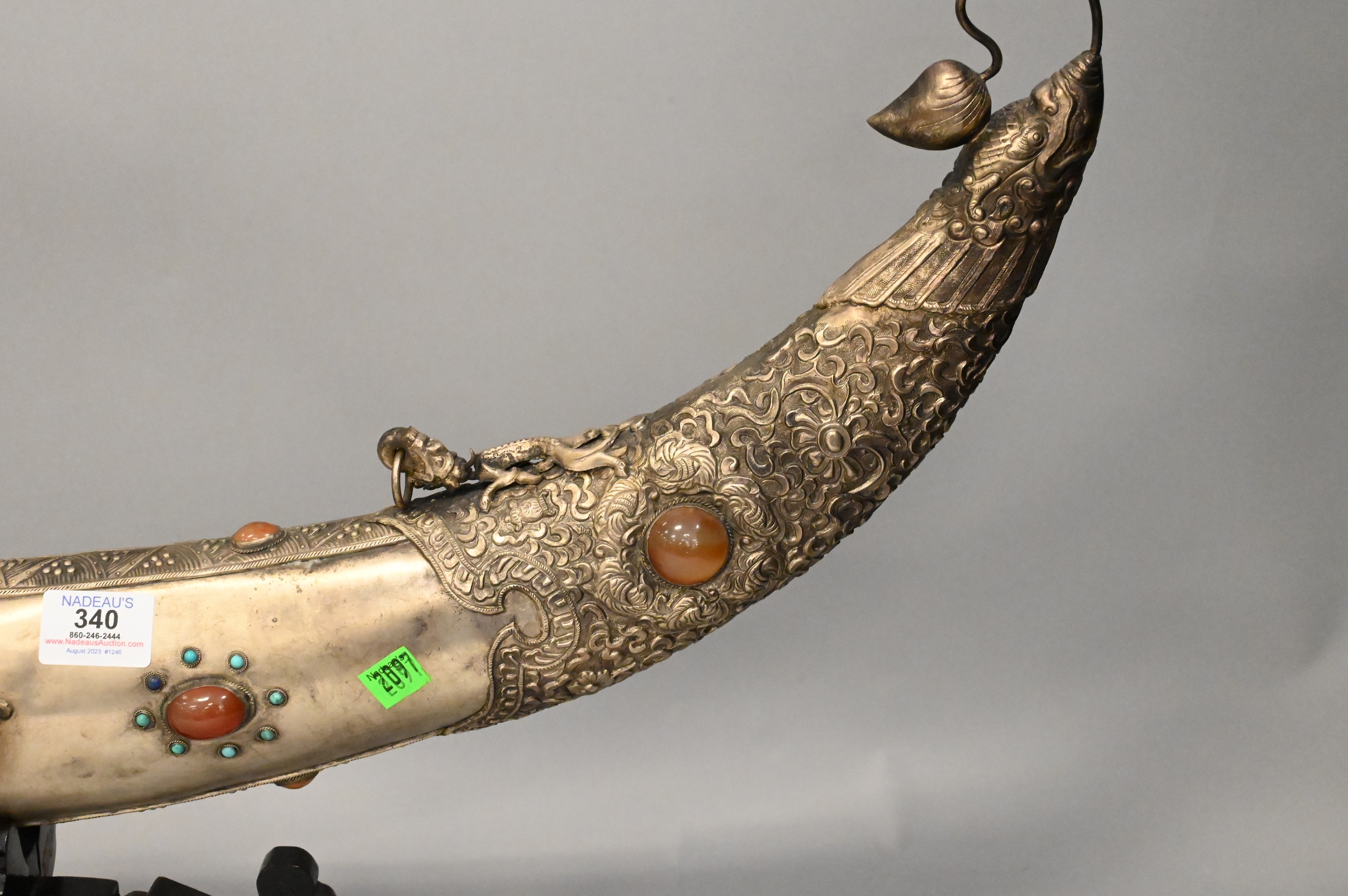 Lot 340: Antique Carved Tibetan Silvered Sword and Sheath
