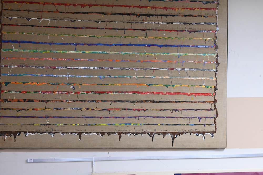 Lot 340: Aris Koutroulis (Greek, 1938 – 2013), untitled #8, 1981, acrylic on linen, frame size 48″ x 72″ x 1 1/2″.