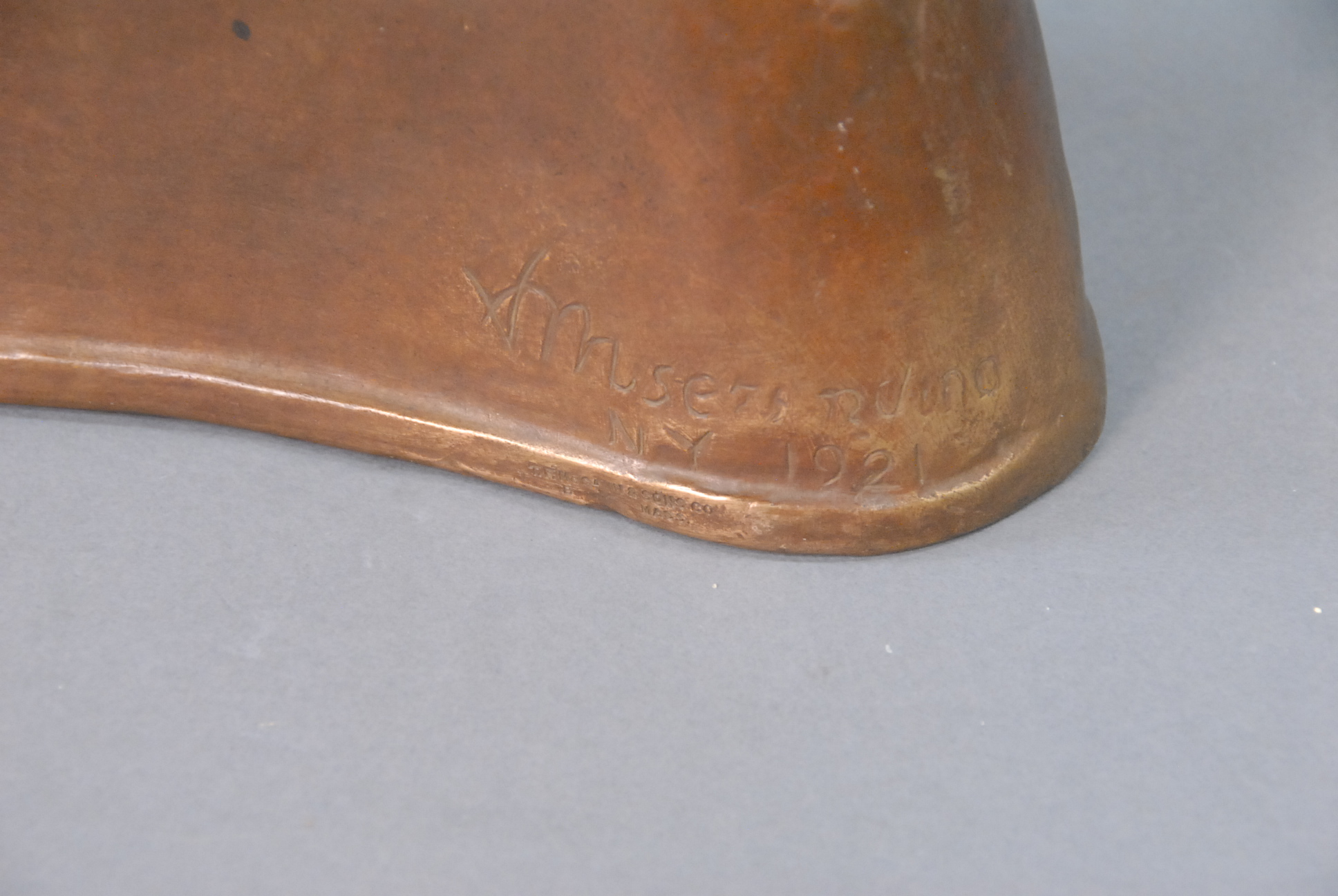 Bronze bust with embossed group of people on bottom, signed on reverse V. Mvserndina, and marked T. F. McGann & Sons, Mass.