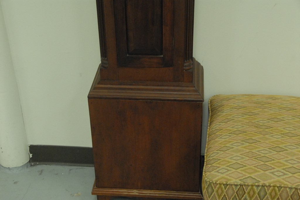 Cherry tall case clock with painted wood dial and brass works. Provenance: Brown FAmily, Windsor, Connecticut ht. 79 1/2in.