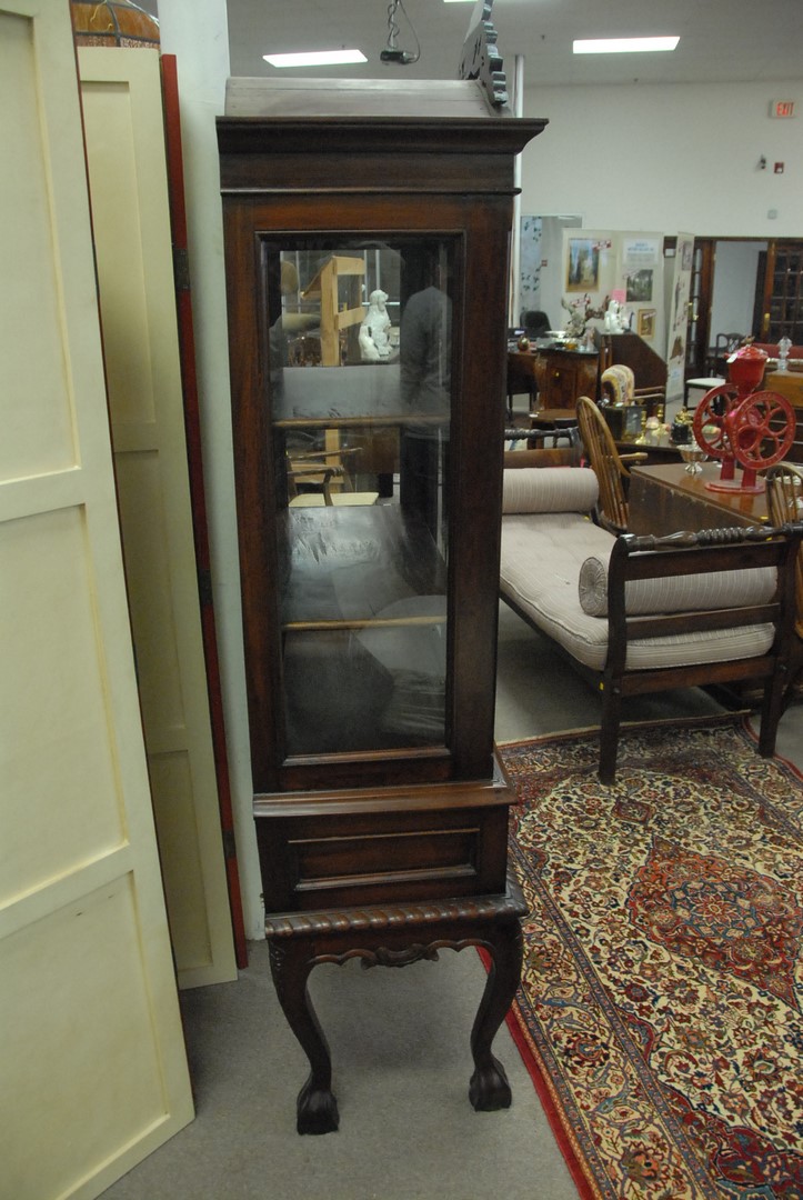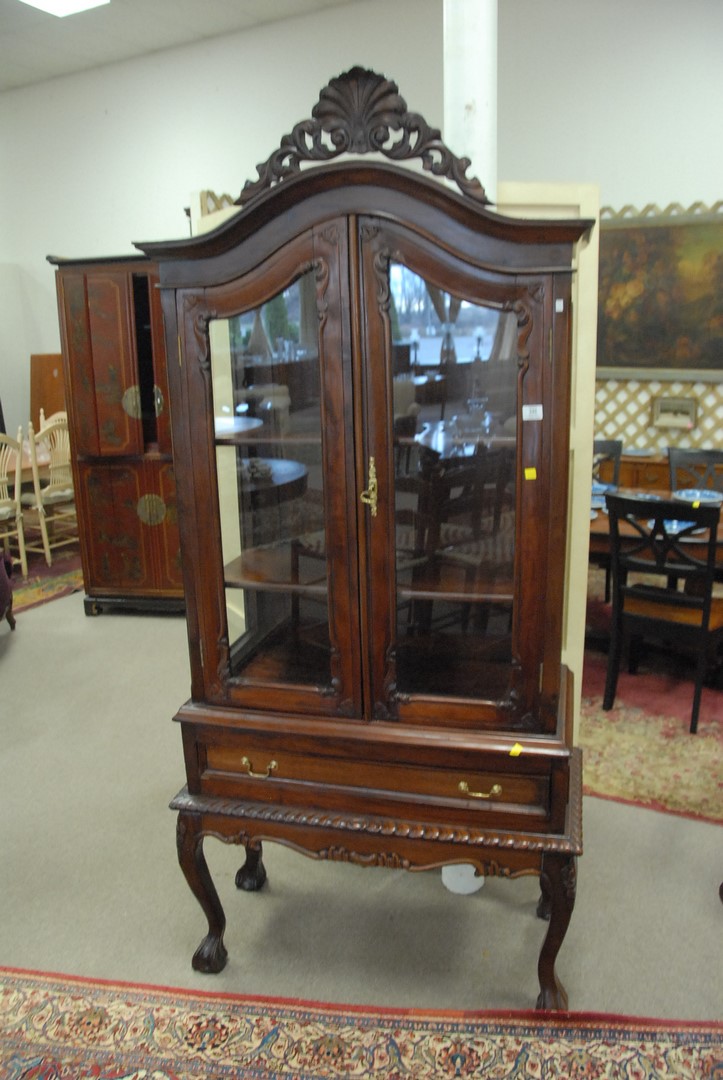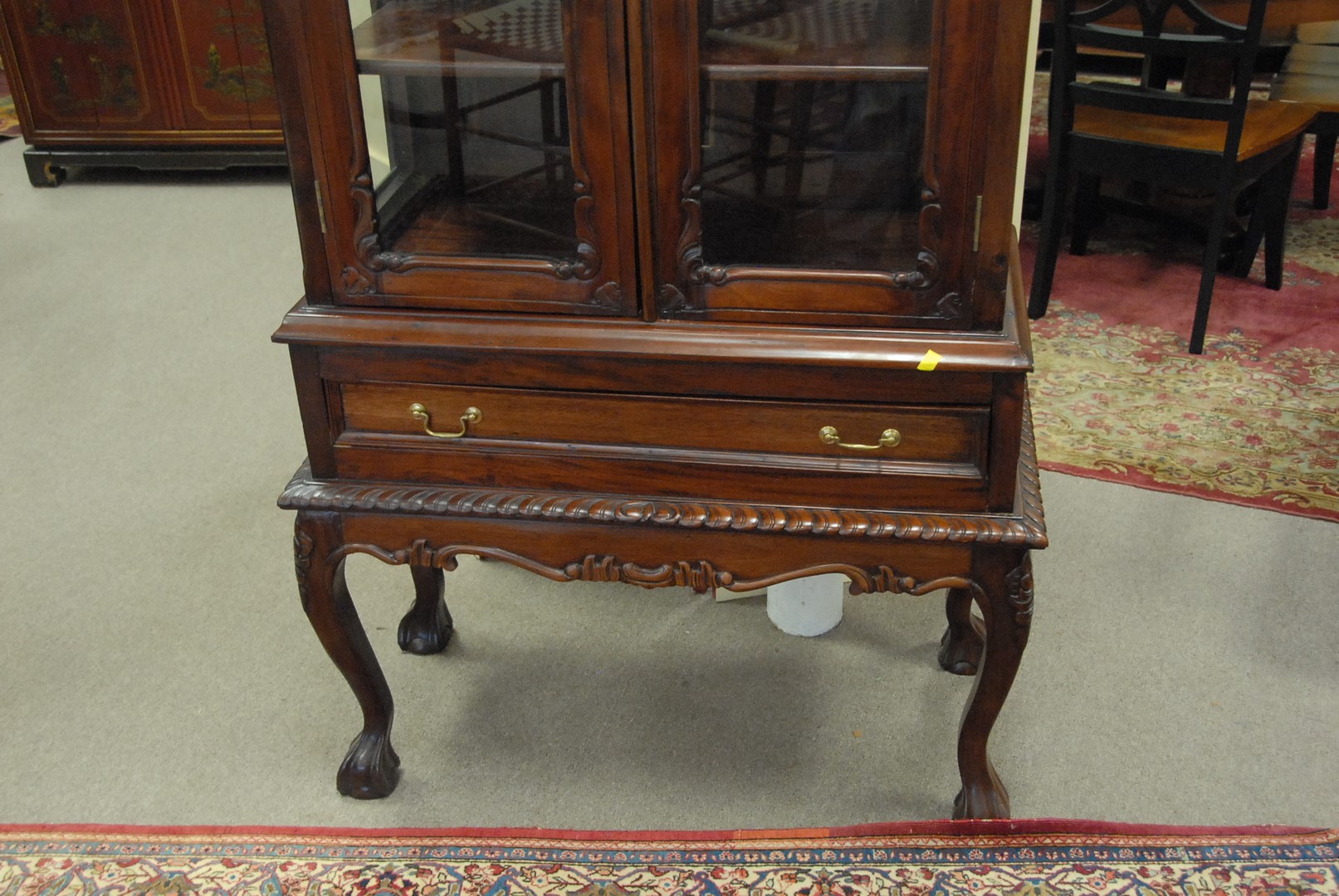 Contemporary mahogany china cabinet. ht. 82 1/2 in. wd. 38 1/2 in. dp. 18 1/2 in.