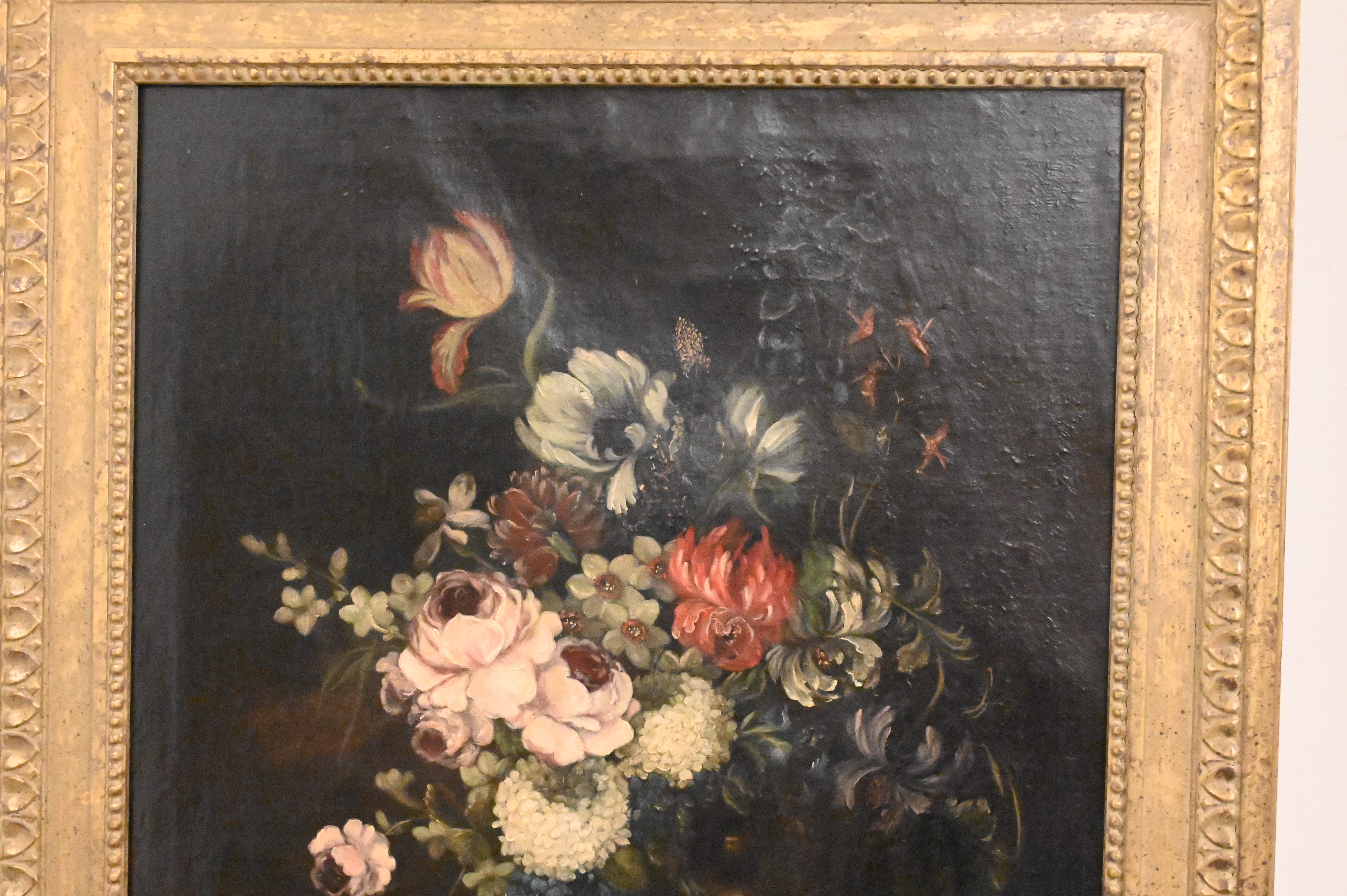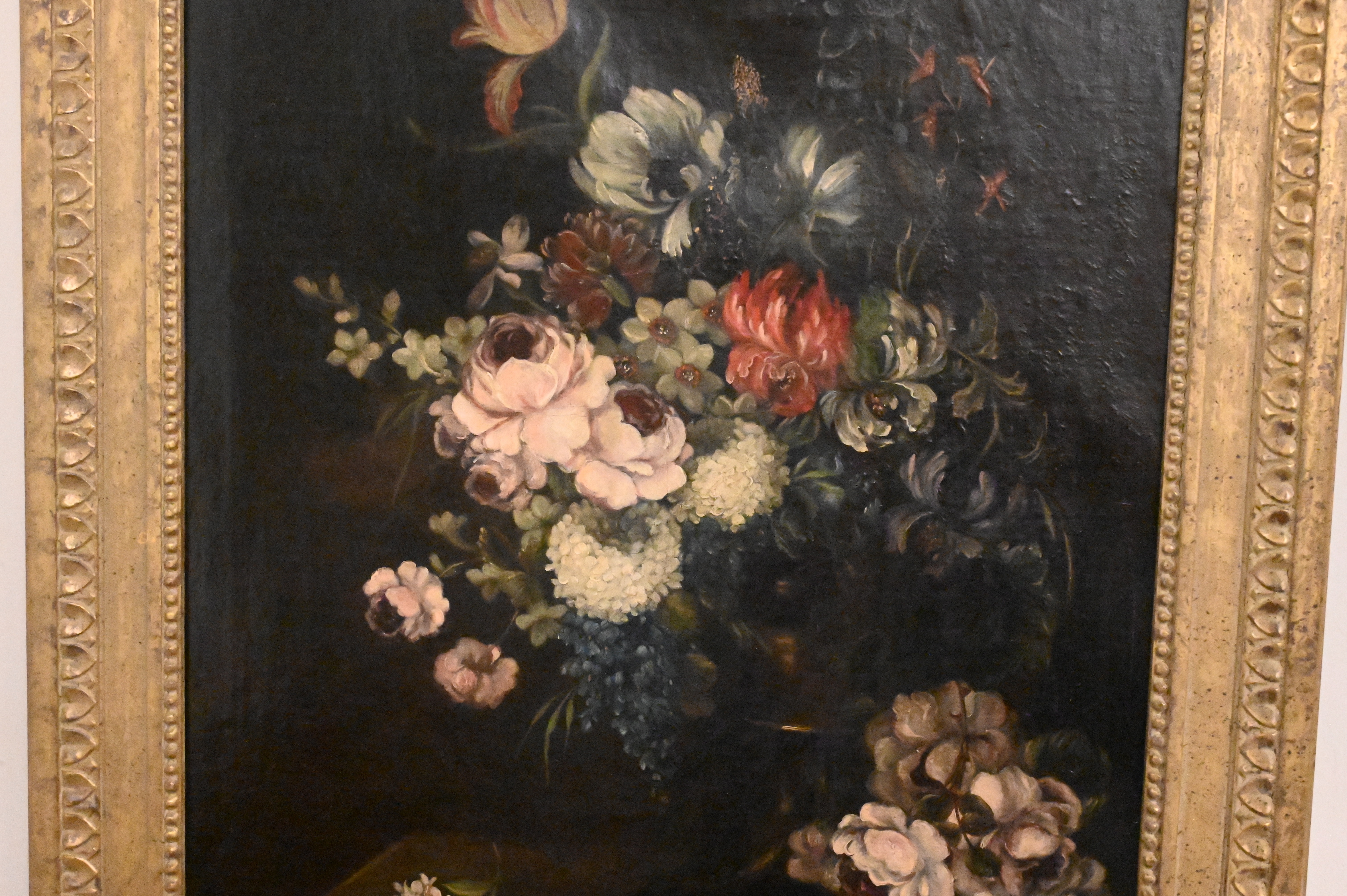 Condition: restretched and relined canvas, craquelure throughout, some paint loss, heavy varnish