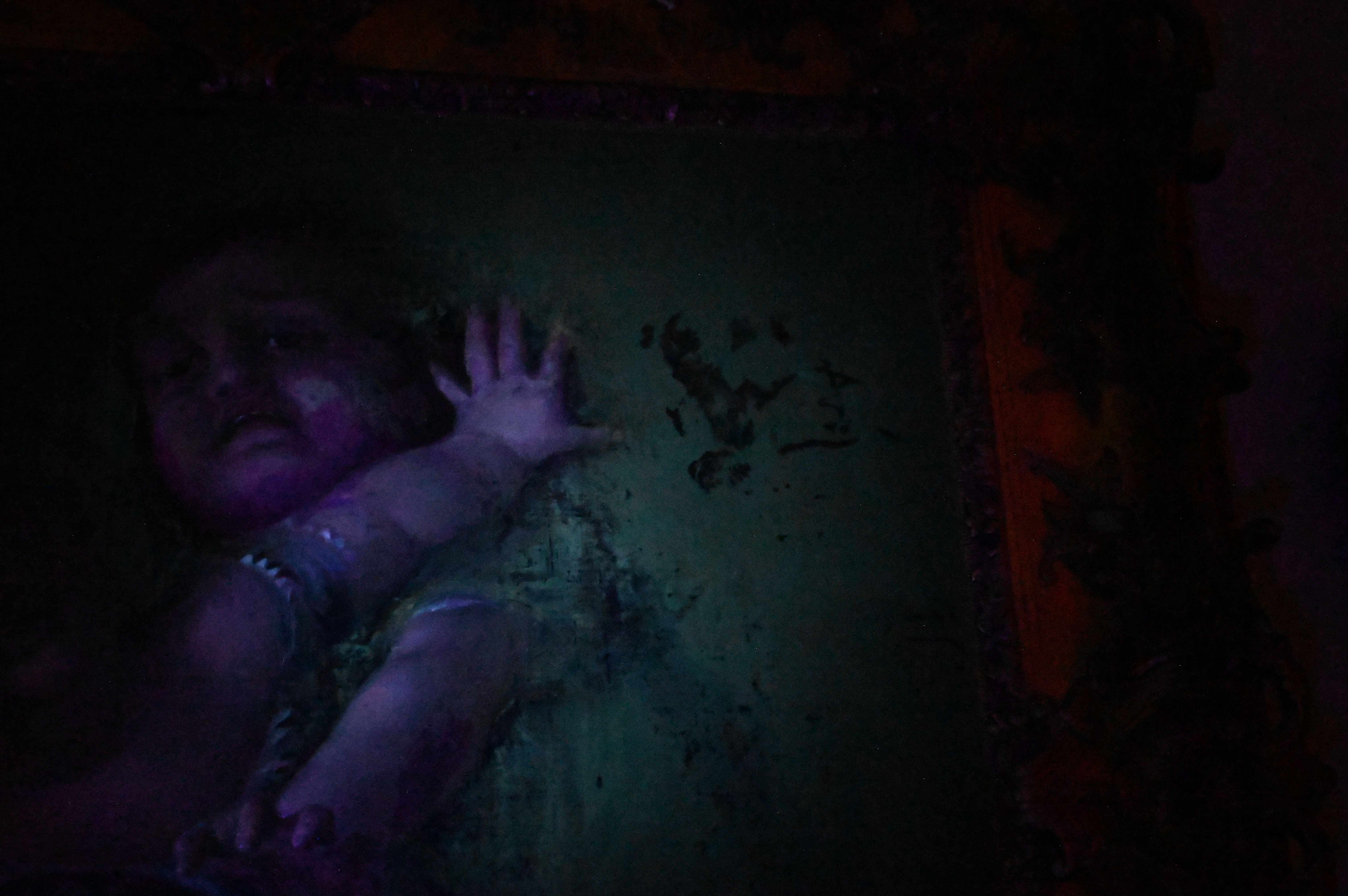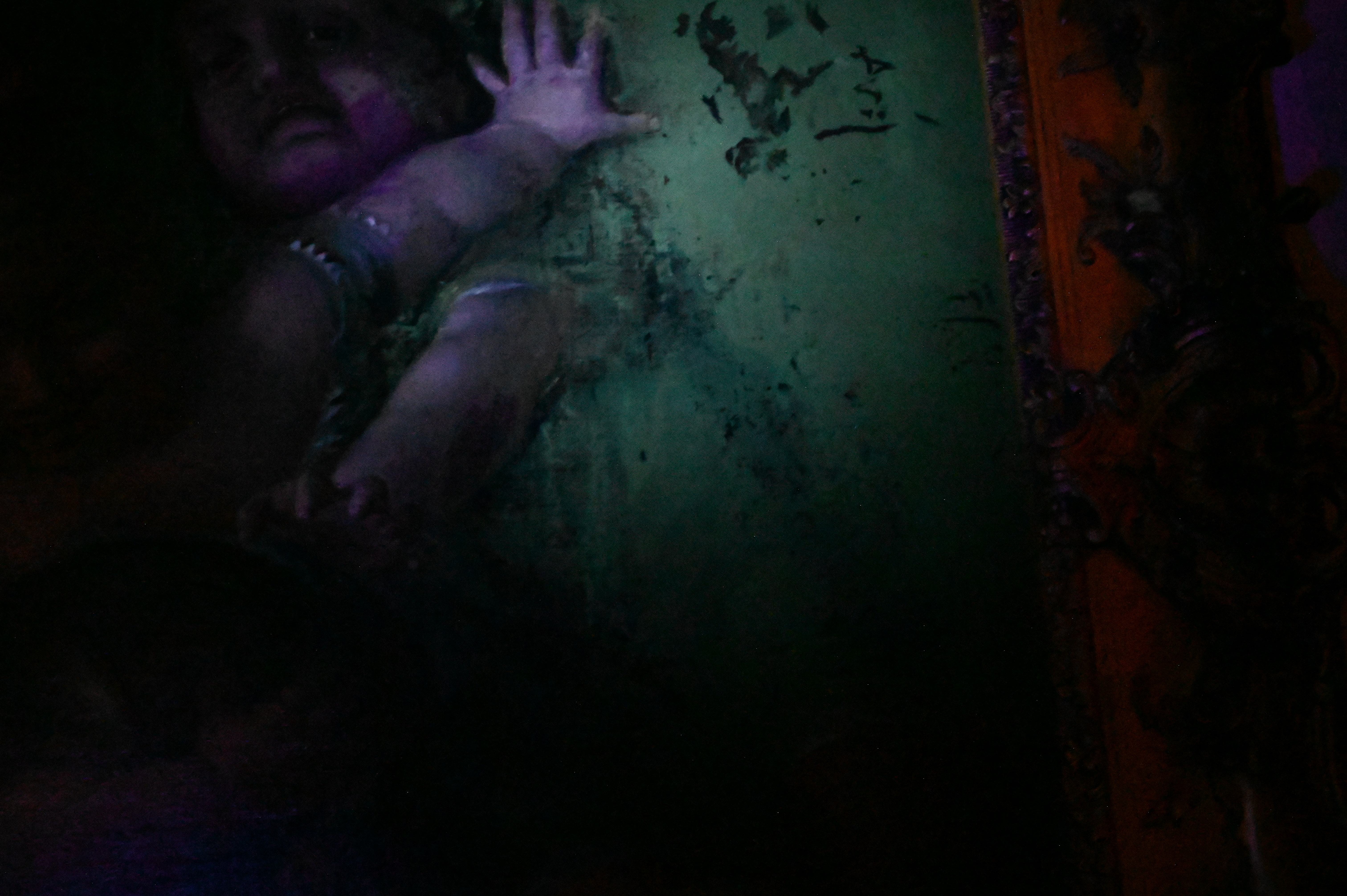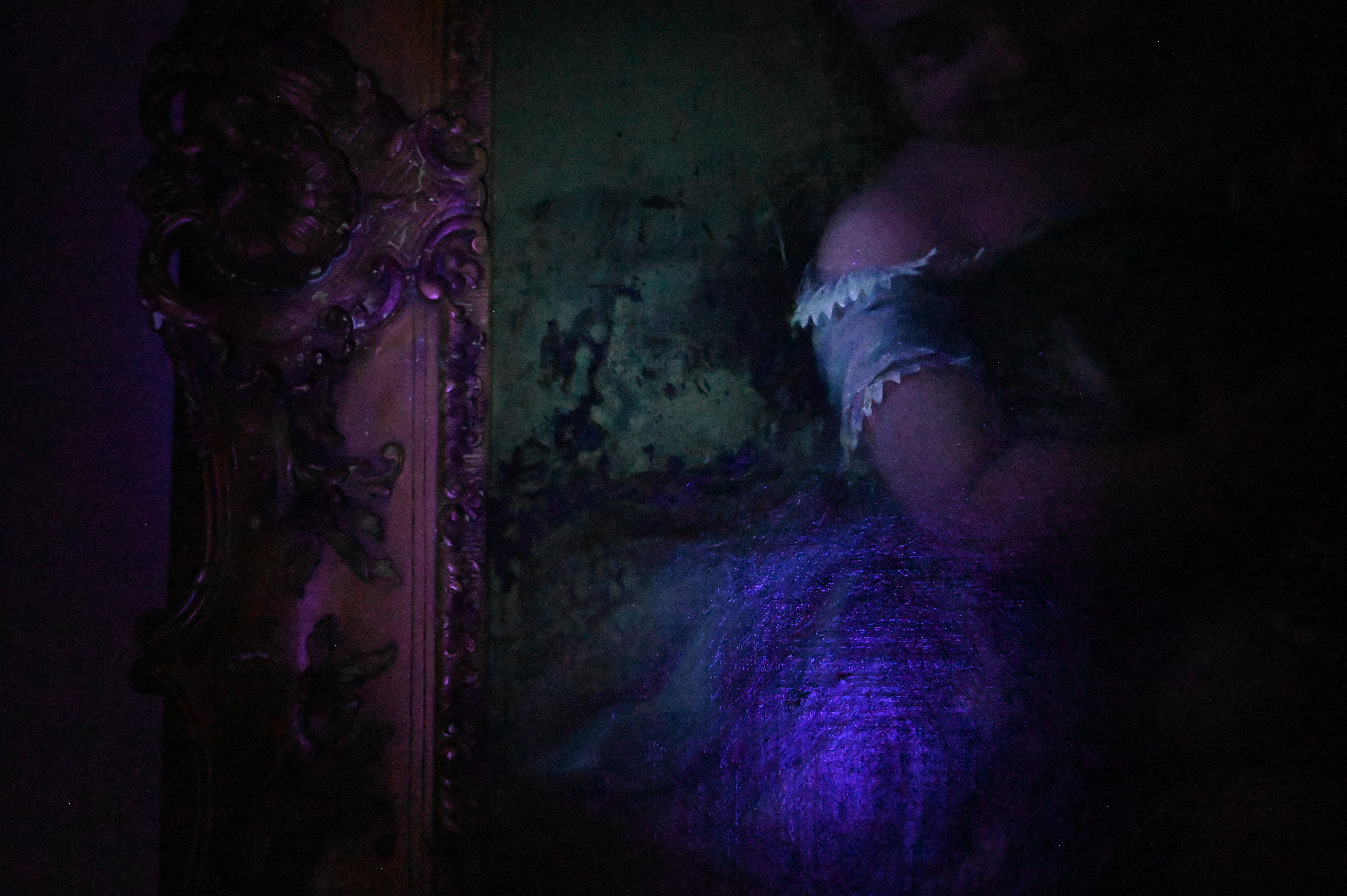 Canvas has been relined and restretched. craquelure. Repairs to frame. varnish concentrating in background. inpainting.