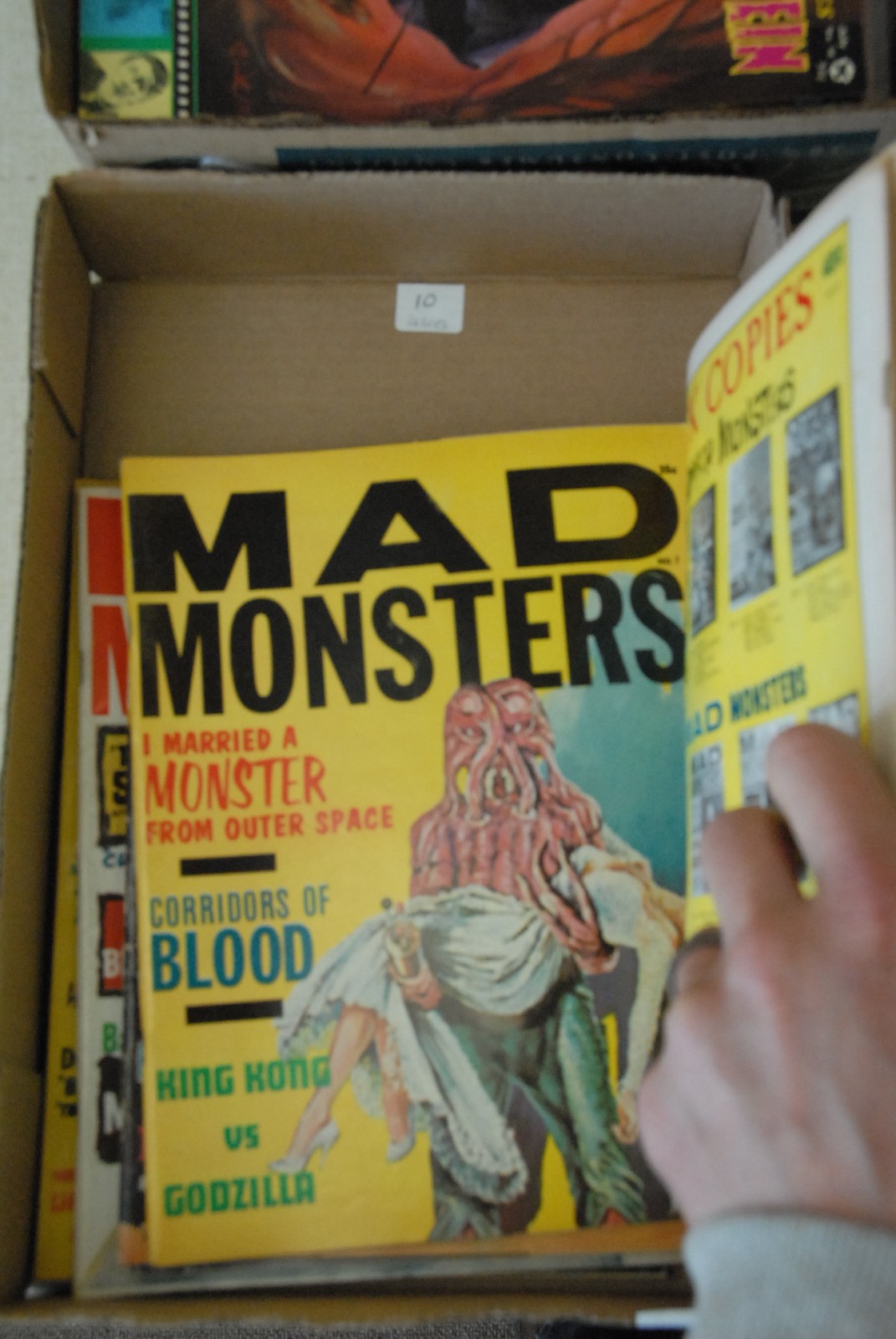 Four box lots of magazines to include Mad Monsters, Monster World, Horror Monsters, Frankenstein