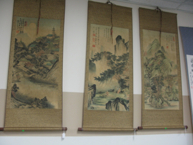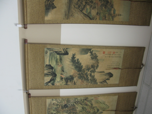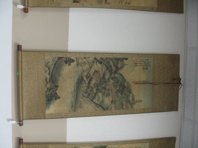 Group of four small scrolls all mountainous landscapes.