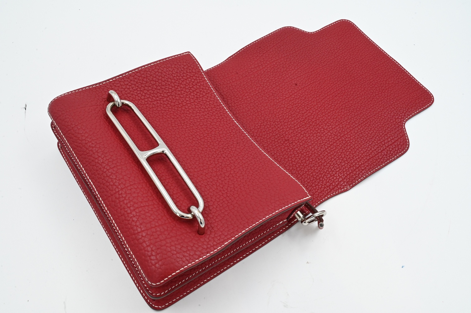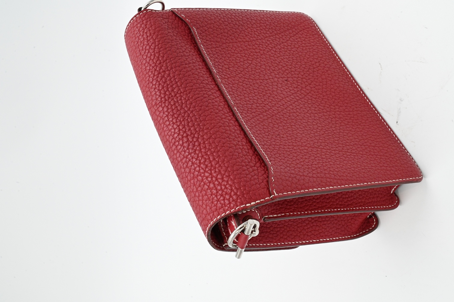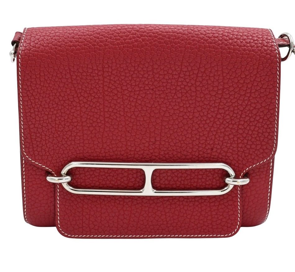 Hermes Red Clemence Roulis Leather Bag with Palladium Hardware