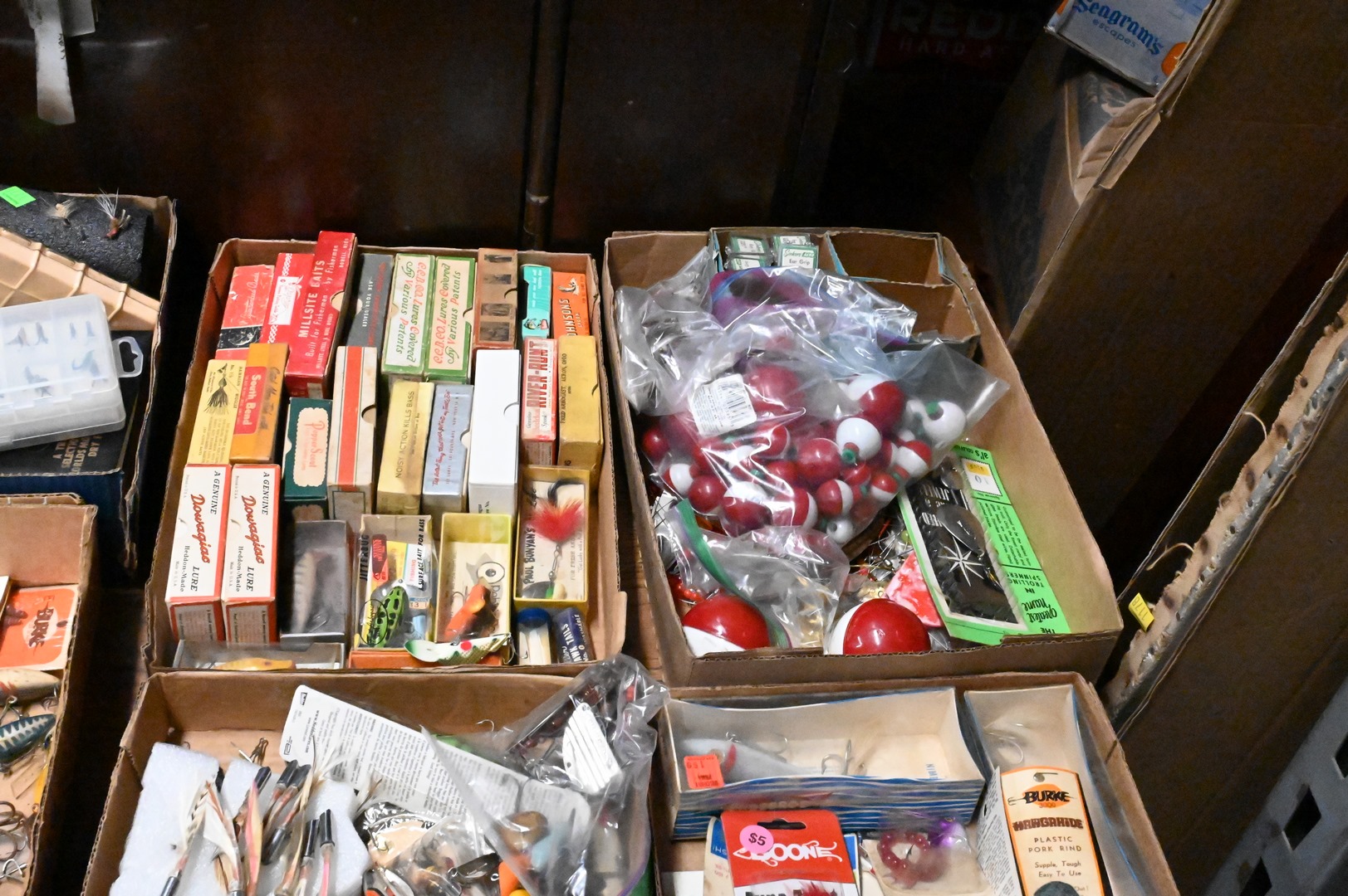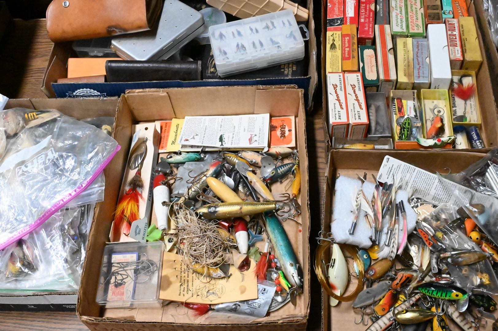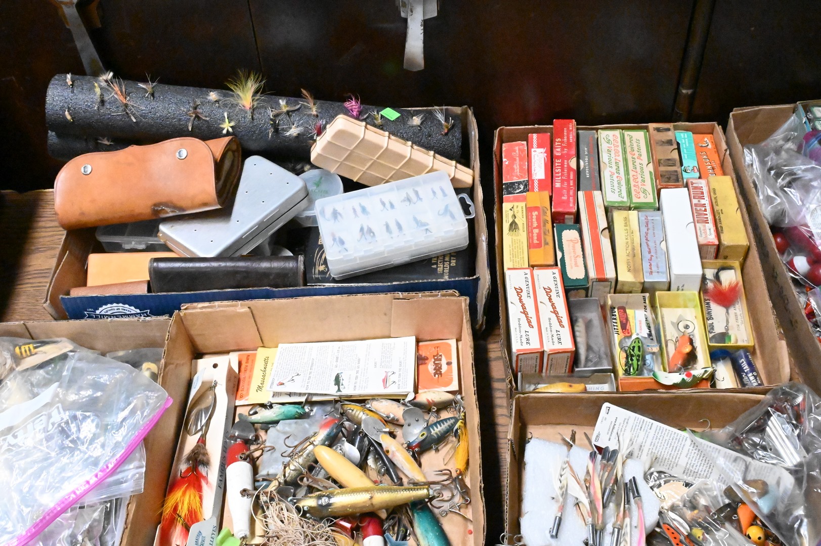 Large Group of Fishing Flies, Bate, and Lures, some in original boxes, eight box lots. Provenance: Estate of Peter Tillou, Litchfield, Connecticut.