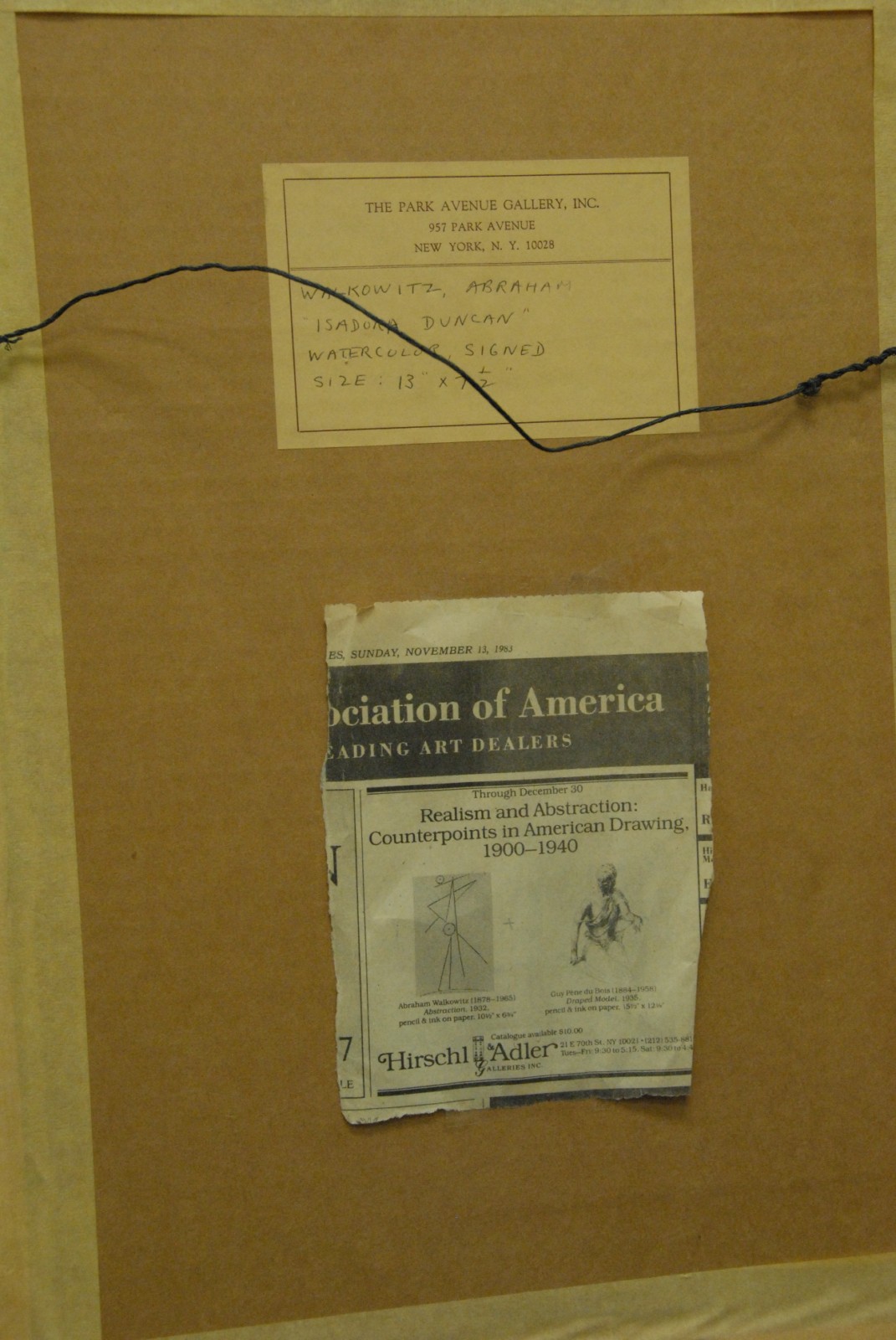 Abraham Walkowitz 1878 – 1965 ISADORA DUNCAN watercolor signed bottom center A. Walkowitz.
